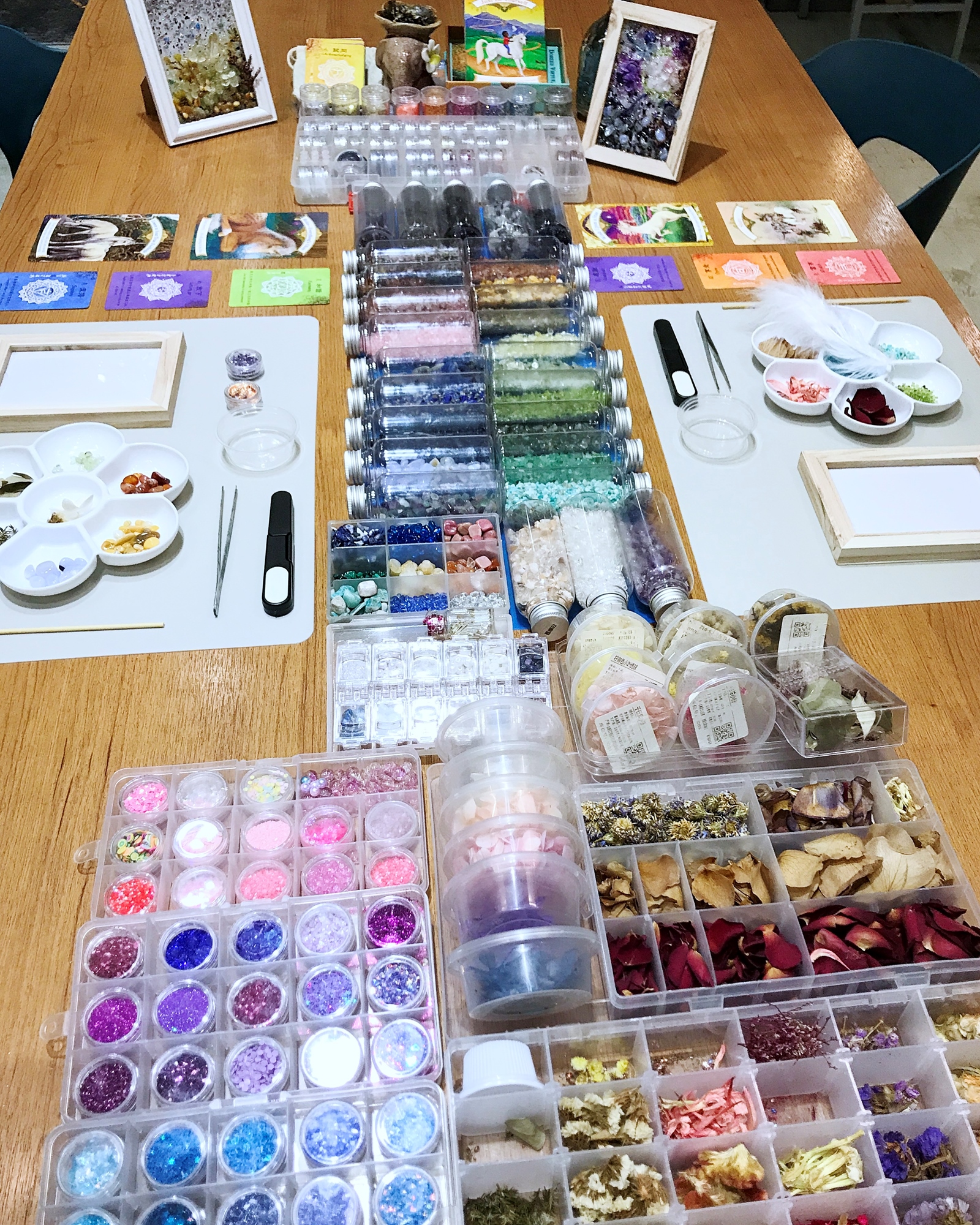 現場會準備所需的素材與工具,如果自己有些小飾品、水晶想加入也可以一起帶來喲!