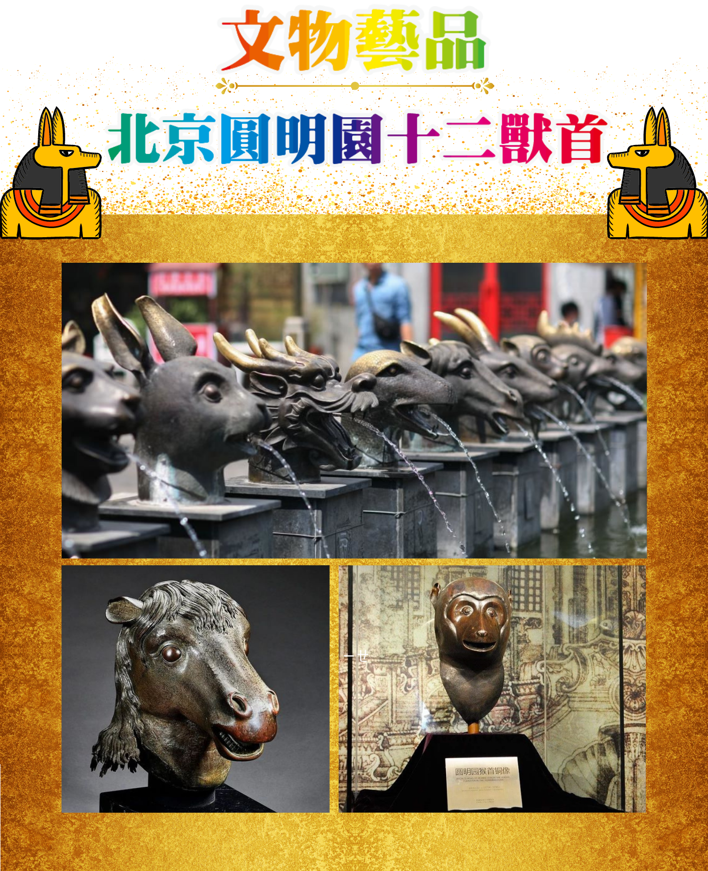 中華民族歷史悠久,當年圓明園的十二獸首因為英法戰爭而各分東西。這次在新光三越,重現1:1仿真的圓明園十二獸首,合為一體的獸首,象徵著21世紀東方文化復甦與崛起的趨勢!