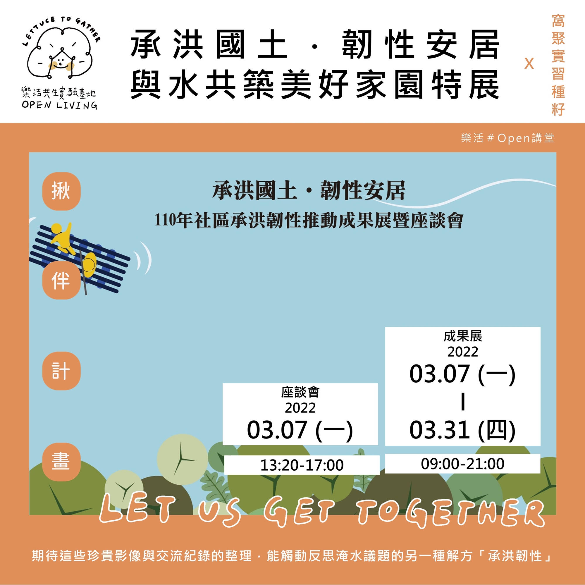 樂活基地三月免費活動 x |承洪國土.韌性安居-與水共築美好家園特展| <揪伴2.0計畫 系列活動>