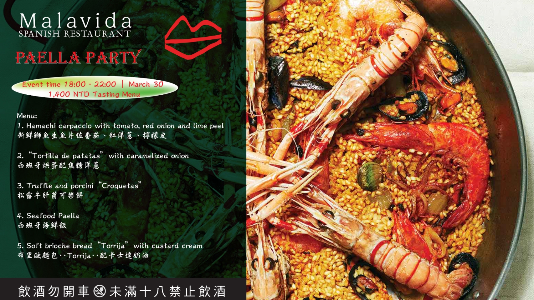 3/30(三)晚上6:00,我們的Lucas主廚,將用最經典、最傳統、最有特色的西班牙海鮮飯為每位貴賓展現最真實的西班牙美食。
