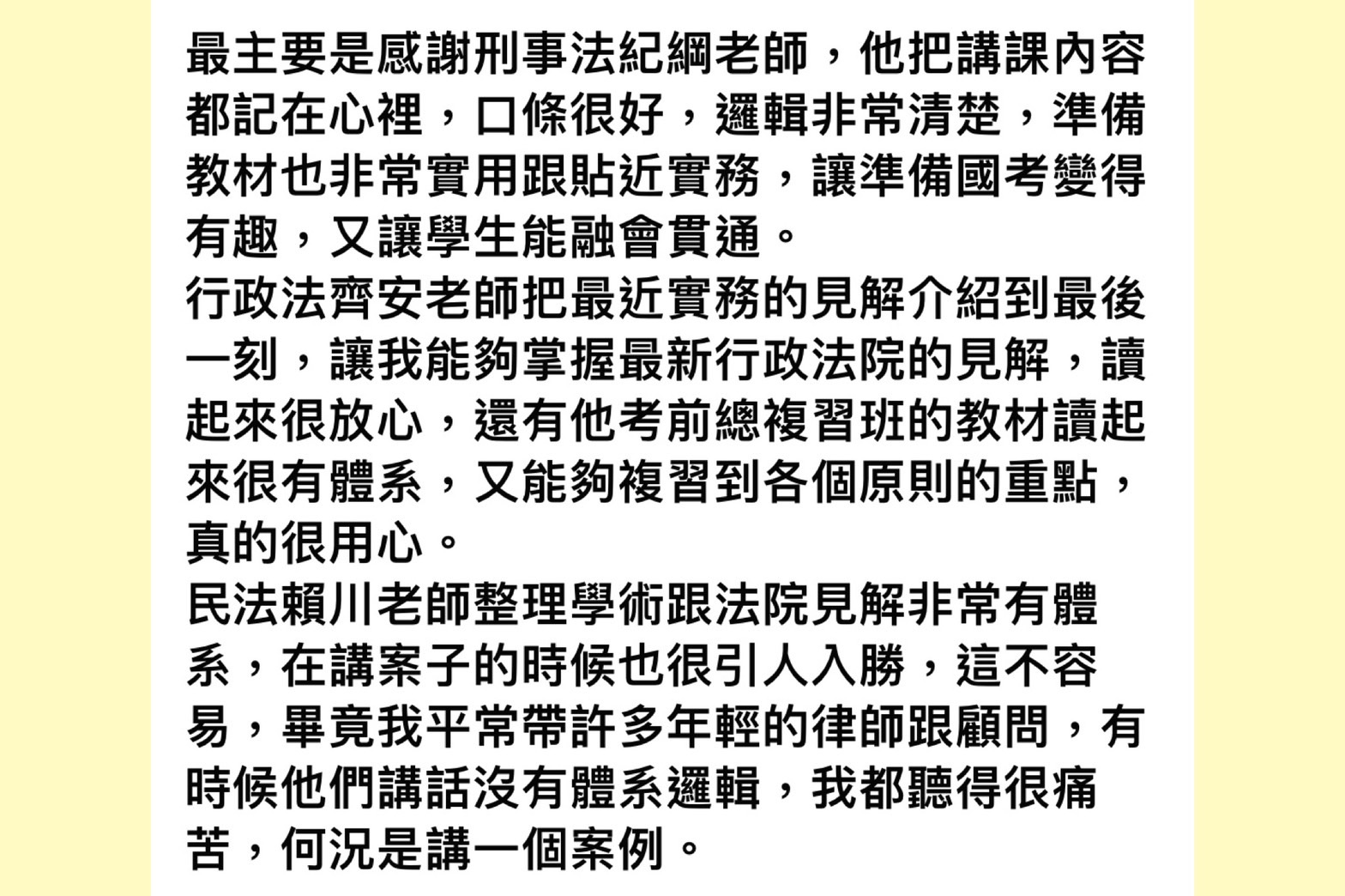 二、110調工、高考法廉、普考一般行政三榜 賴同學