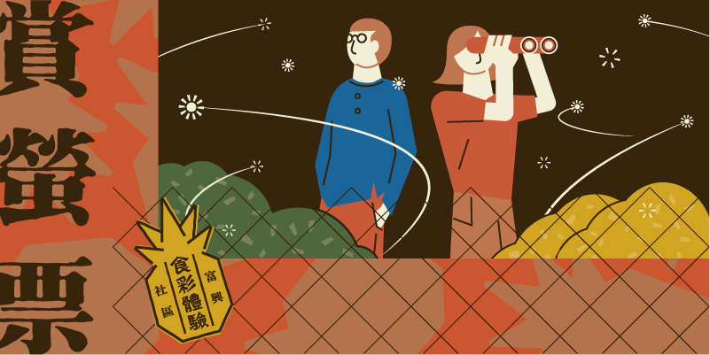在小而巧的富興社區中,除了認識鳳梨外,更能感受中央山脈與海岸山脈贈與當地的感官饗宴:採集當季作物,在田間烹飪,賞山景,也品嚐風味餐點。入夜後,輪到期間限定的螢火蟲登場,春分時刻看著螢光飛舞,為你的2022年畫出最美的弧線。