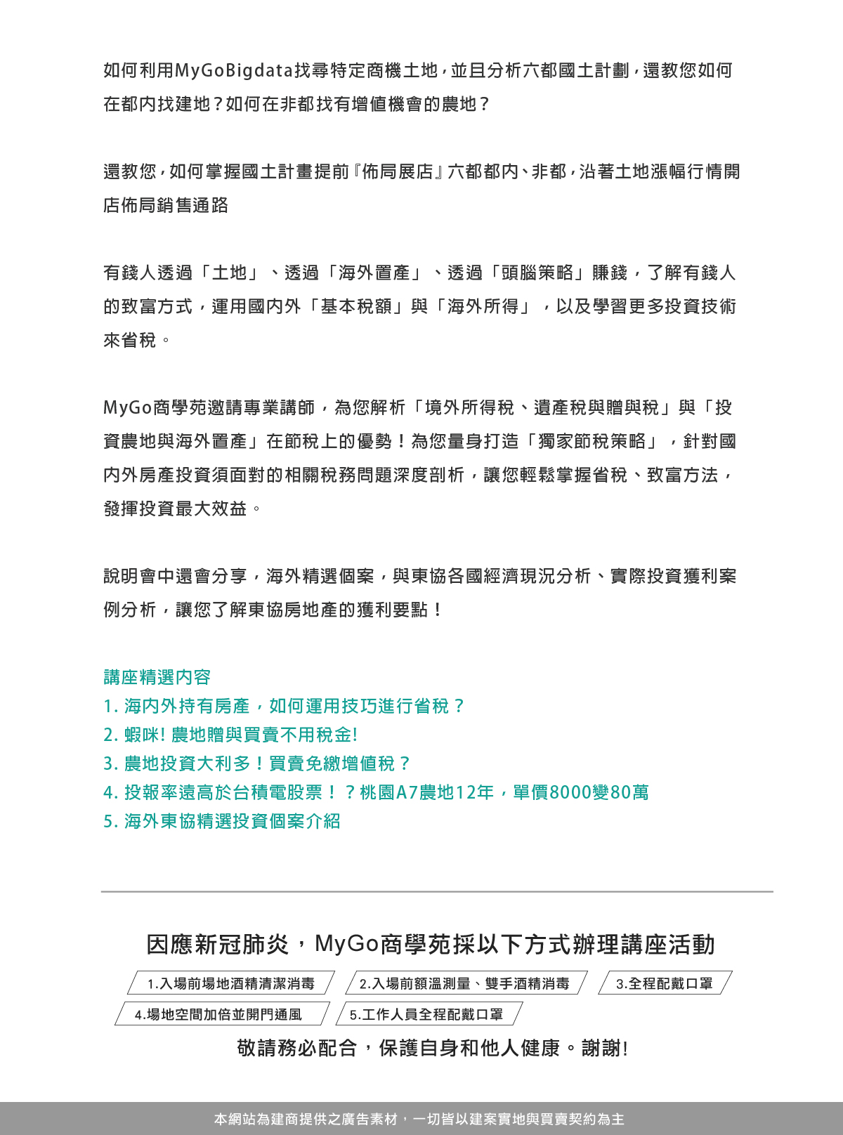 3/12(六) MyGo商學苑之【六都國土計劃與農地大商機&東南亞房產節稅致富大法】 線上直播說明會
