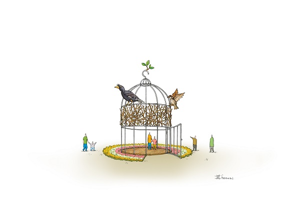 大型環境指標生物裝置藝術-白尾八哥與麻雀