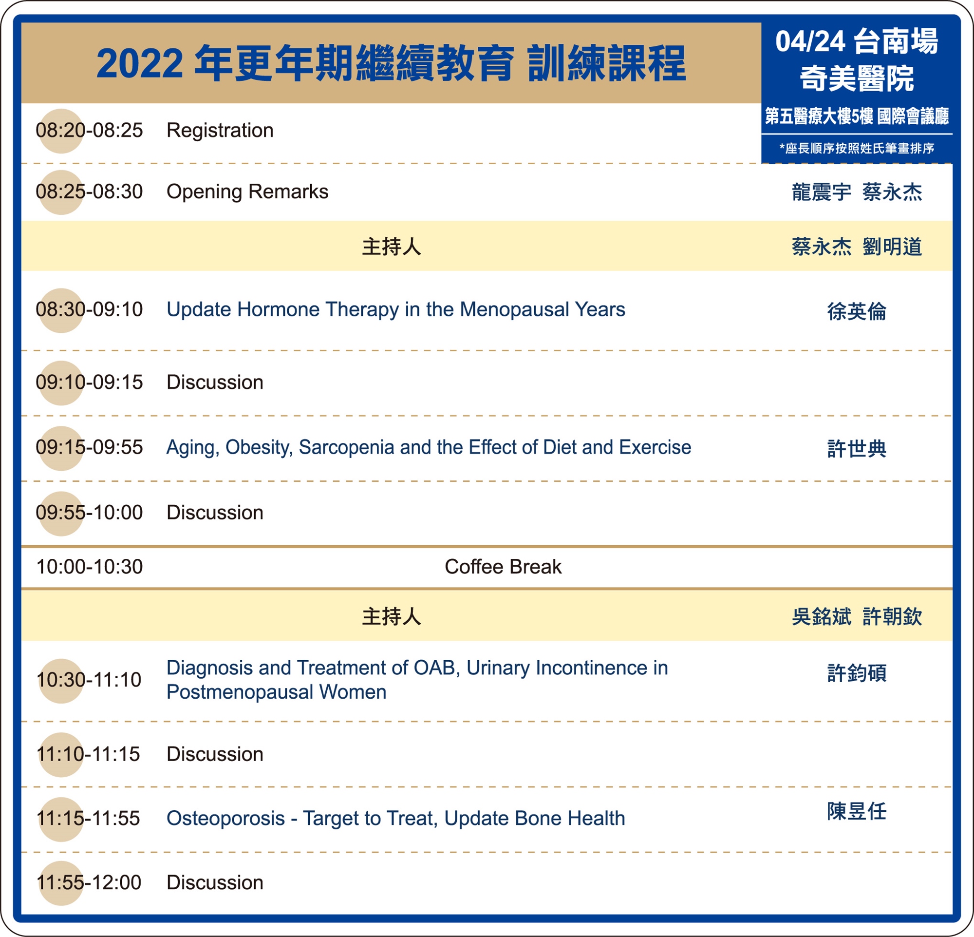 ★本活動將依照中央疫情指揮中心規範做滾動式調整,最新消息請見學會官網(http://www.menopause.org.tw/)。