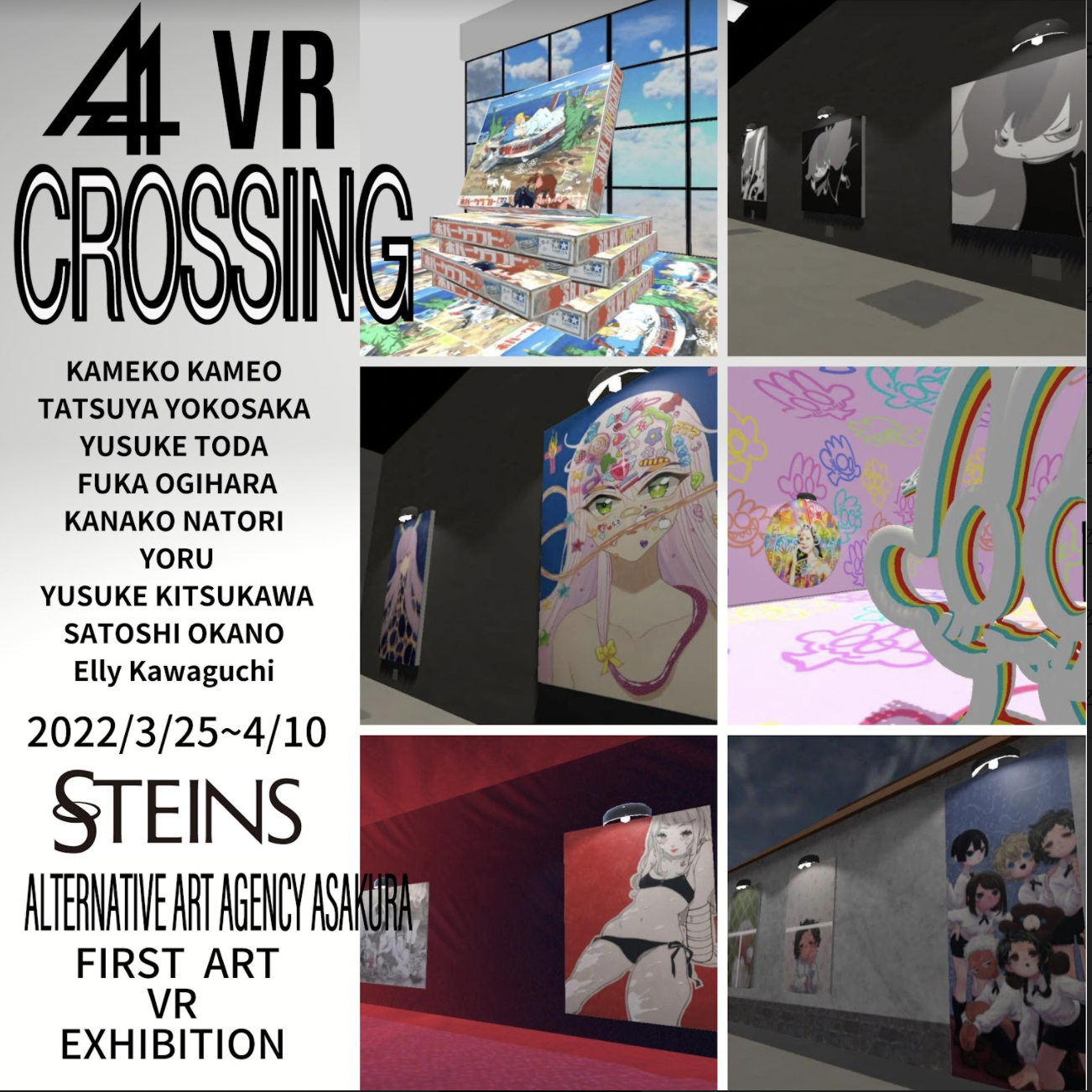 是一家從事藝術相關的VR和AI的日本Steins科技公司,今後將為A4旗下藝術家將舉辦一個VR群展。在一個虛擬社群平台上建立了一個虛擬展覽空間,民眾僅要安裝相關應用程序即可透過智慧型手機、個人電腦和VR設備等各種設備聚集在一起,在虛擬空間中進行觀展。