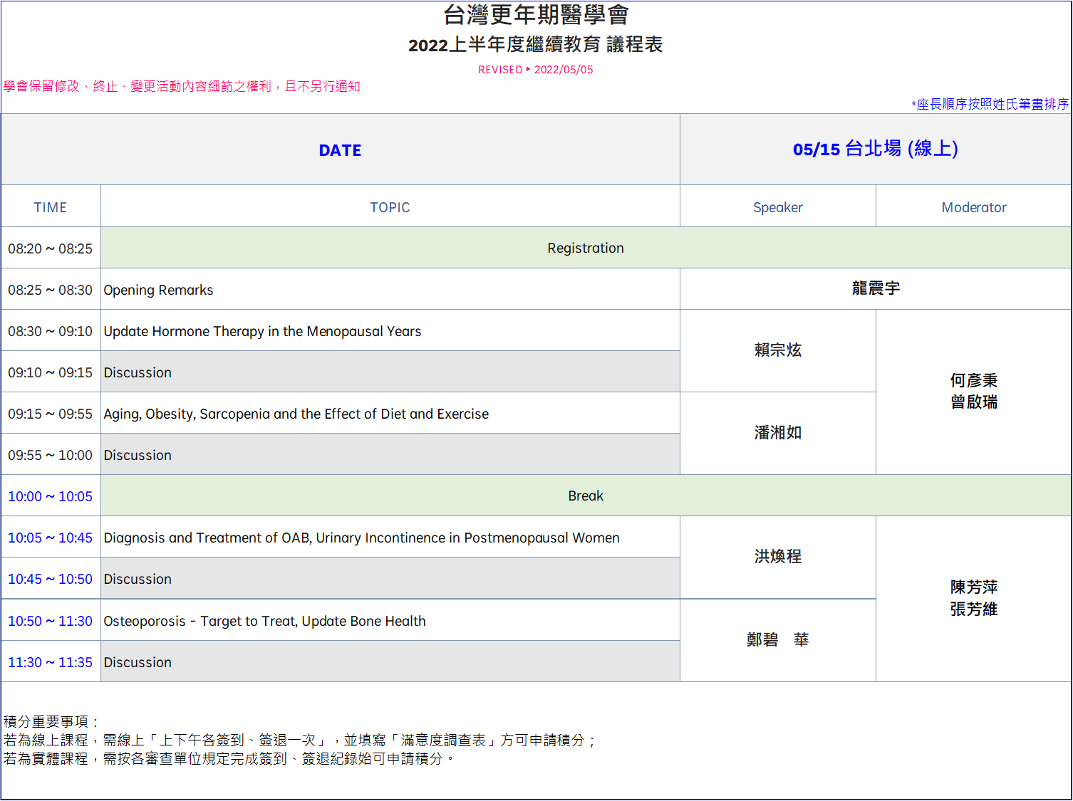★本活動將依照中央疫情指揮中心規範做滾動式調整,最新消息請見學會官網(http://www.menopause.org.tw/)。