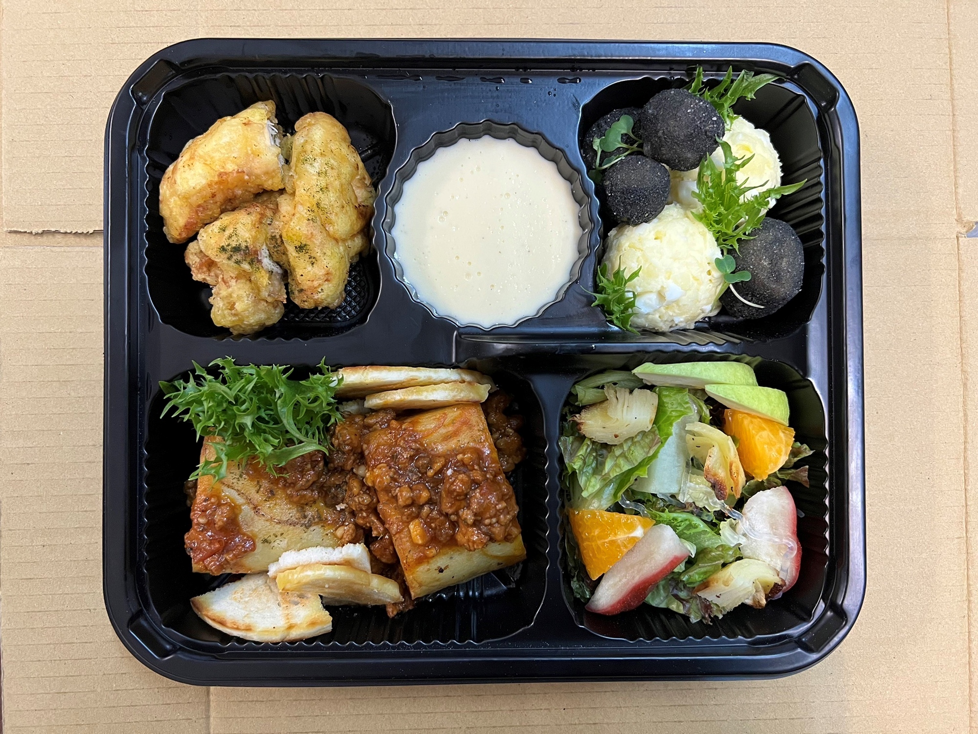 炸唐揚雞,松露馬鈴薯起司醬,頑石馬鈴薯蛋沙拉