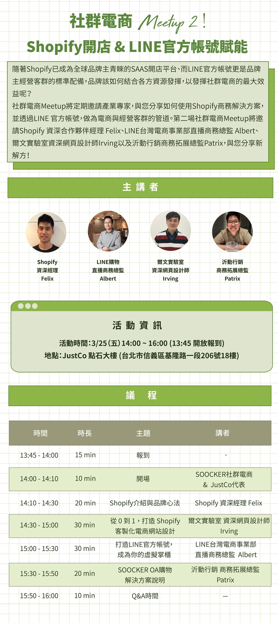 社群電商Meetup 2! Shopify開店 & LINE官方帳號賦能