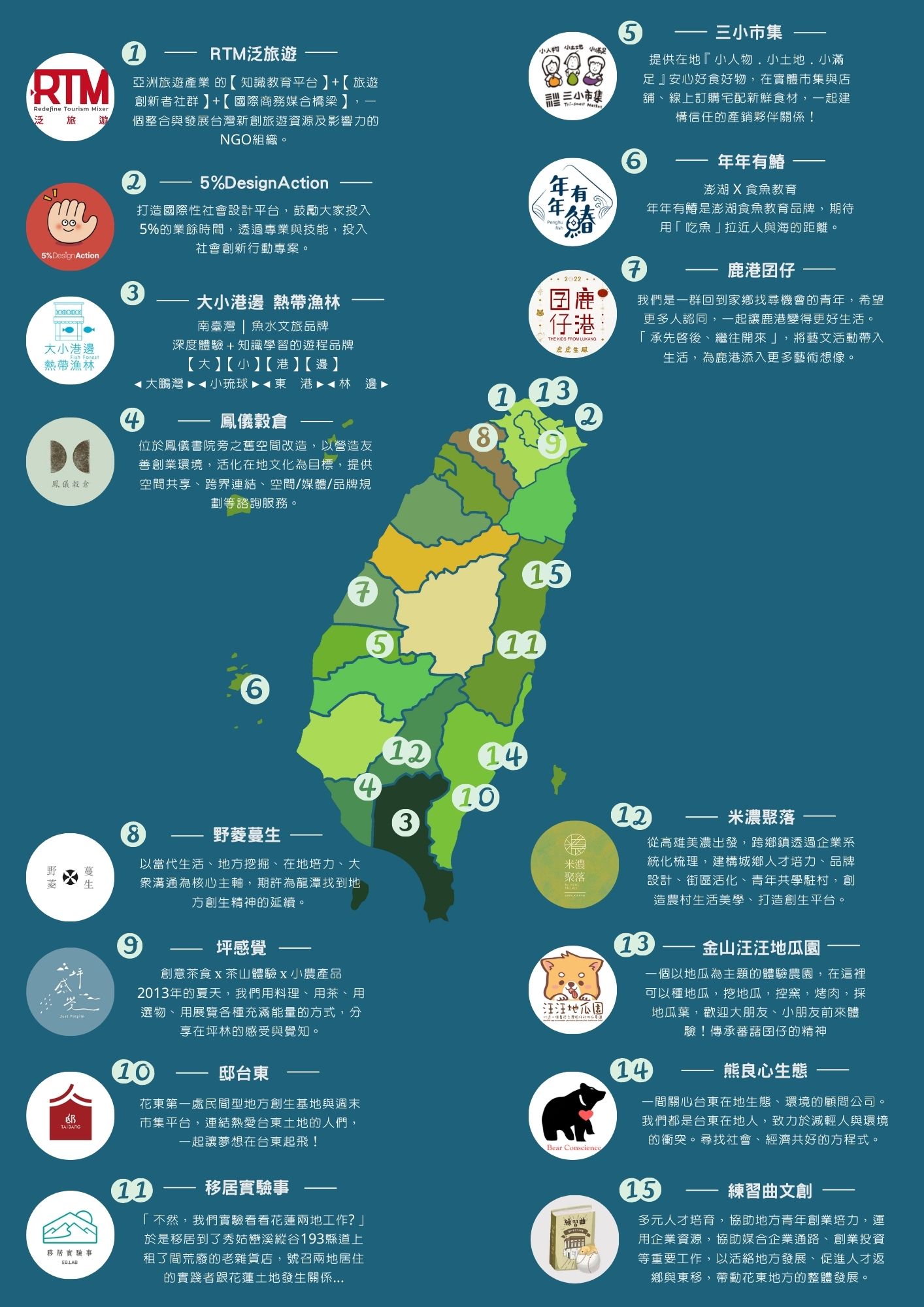 超過20個地方團隊共享盛舉,有機會到台灣各個角落體驗工作!