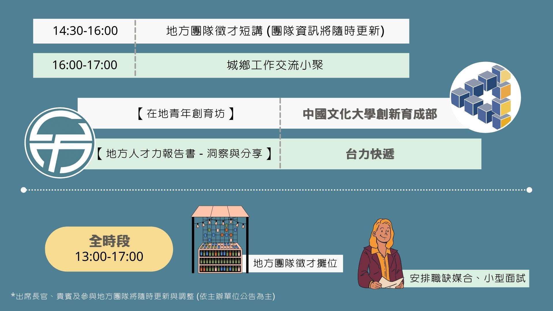 活動亮點:市集擺攤、職涯諮詢、徵才短講、線上交流、近距離互動、現場就業媒合
