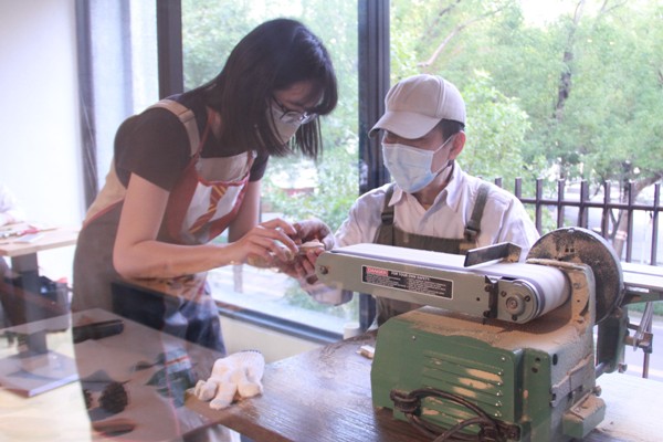 2.每位學員實際操作,進行造型設計,琢磨出整體外形,最後砂磨完成木鋼筆。