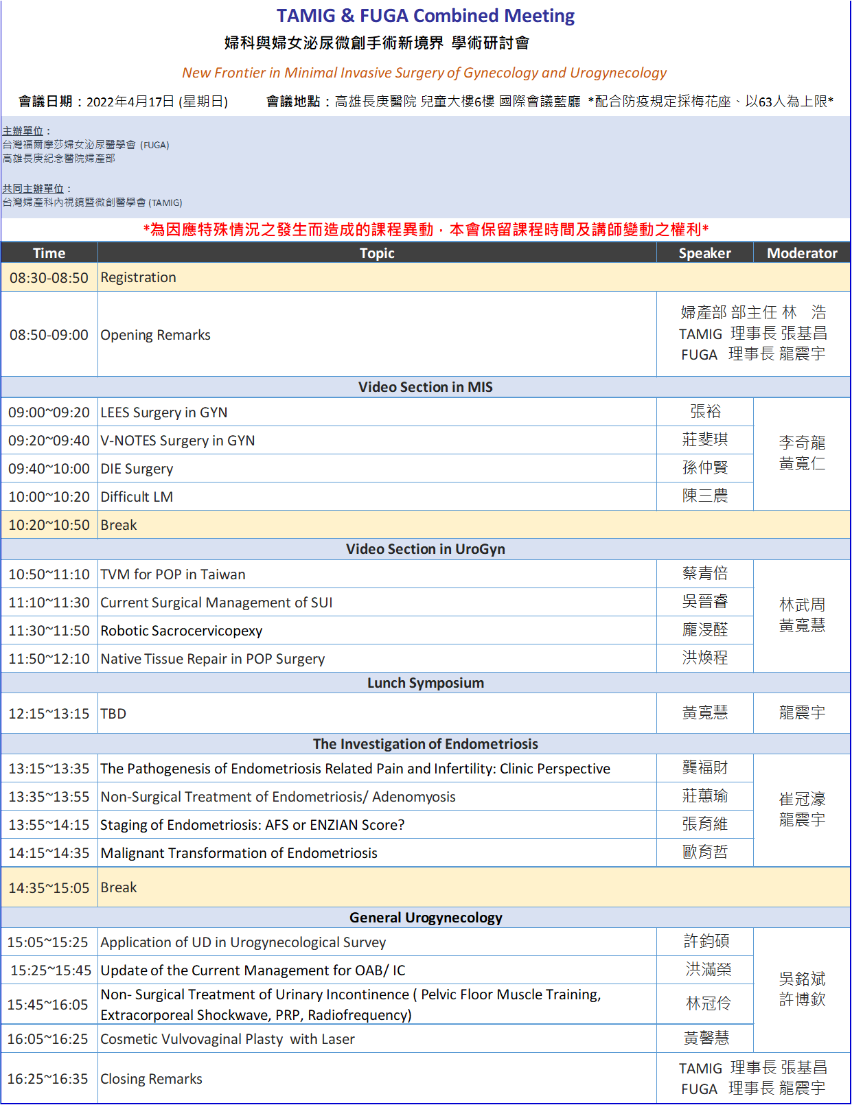 ★本活動將依照中央疫情指揮中心規範做滾動式調整,最新消息請見學會官網(http://www.fuga.org.tw/)。