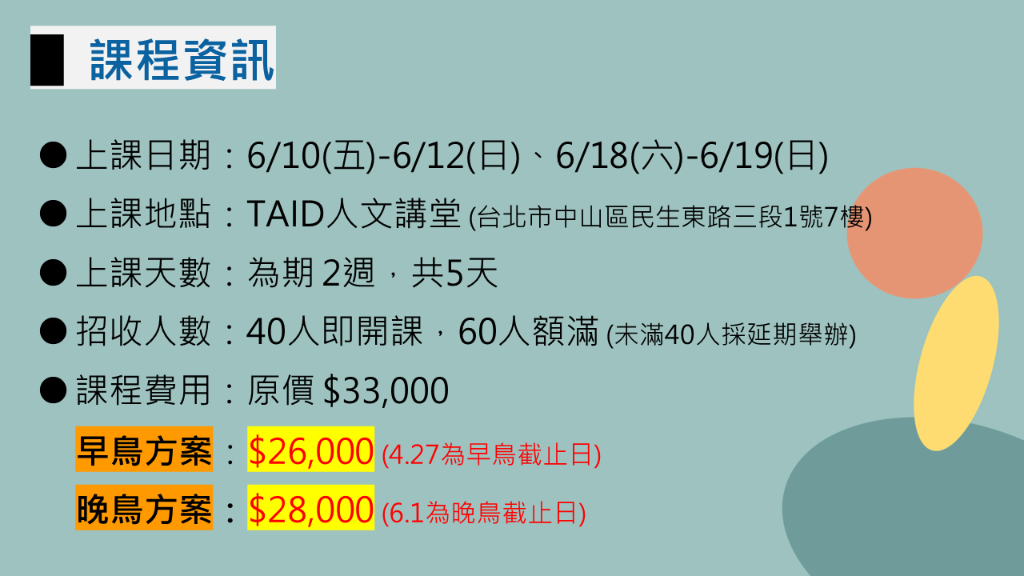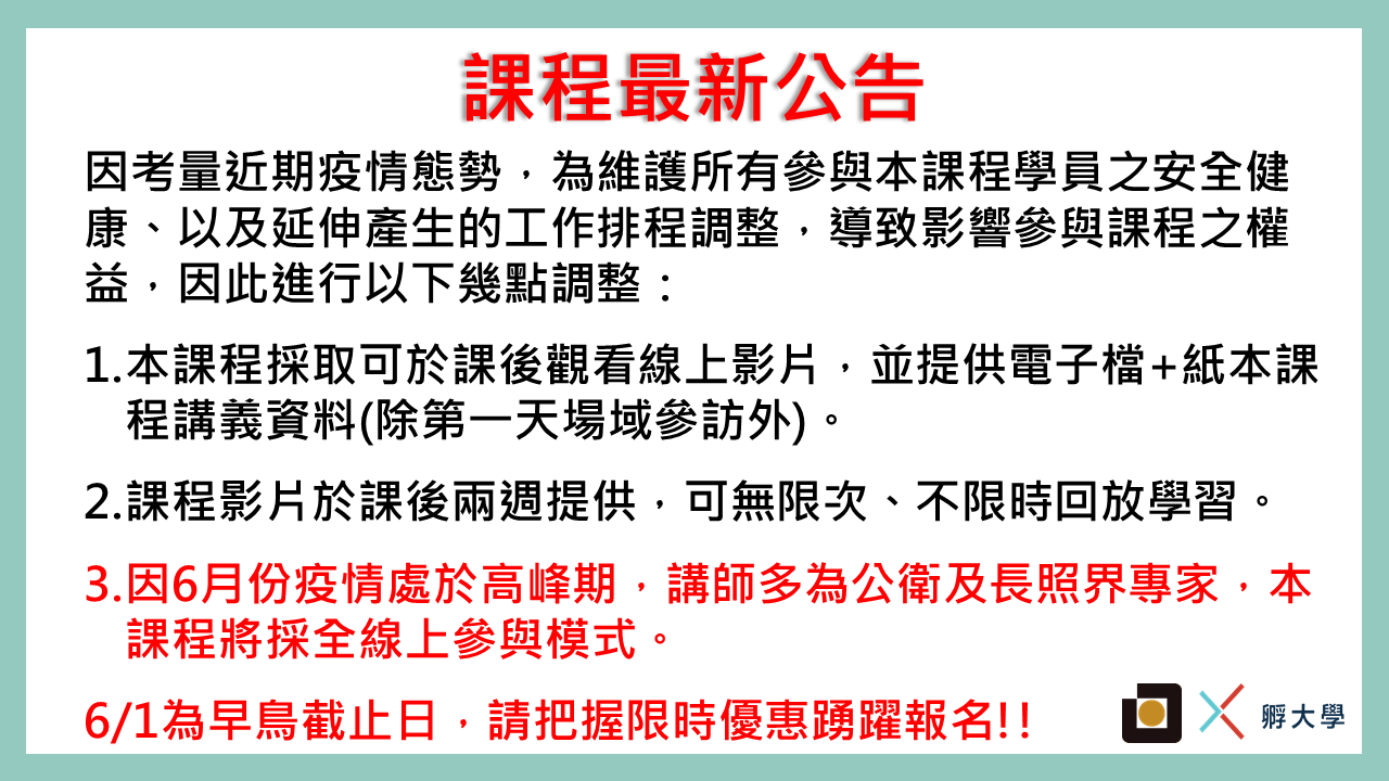 - 報名確認後將建立群組,統一通知ZOOM上課連結。