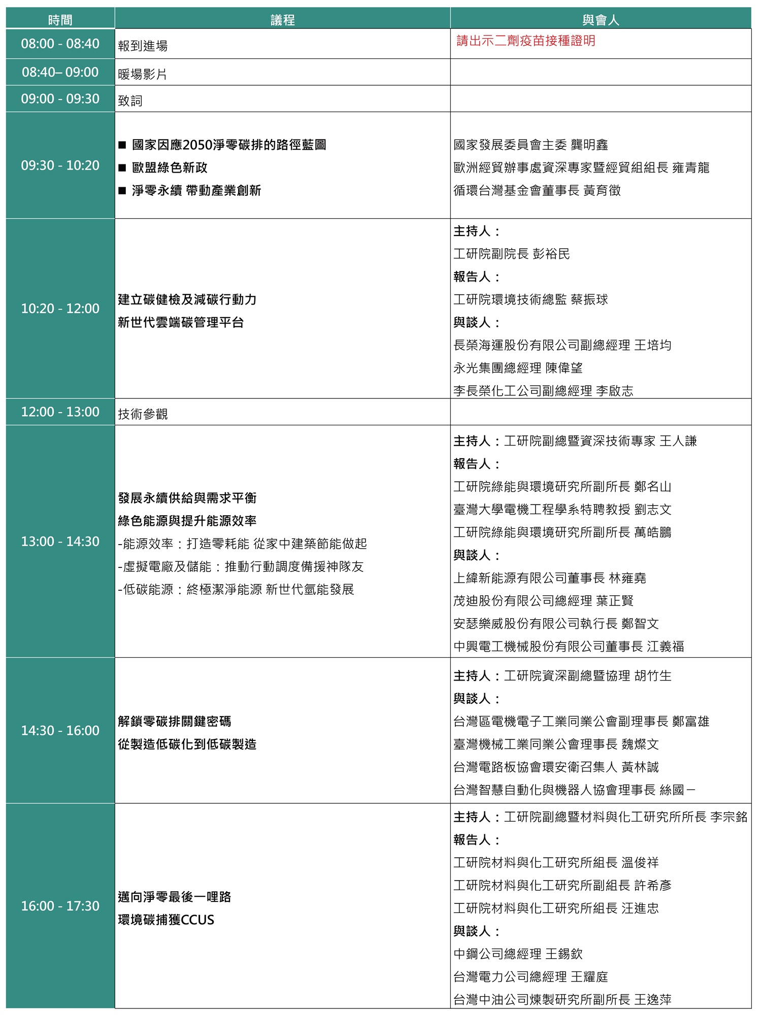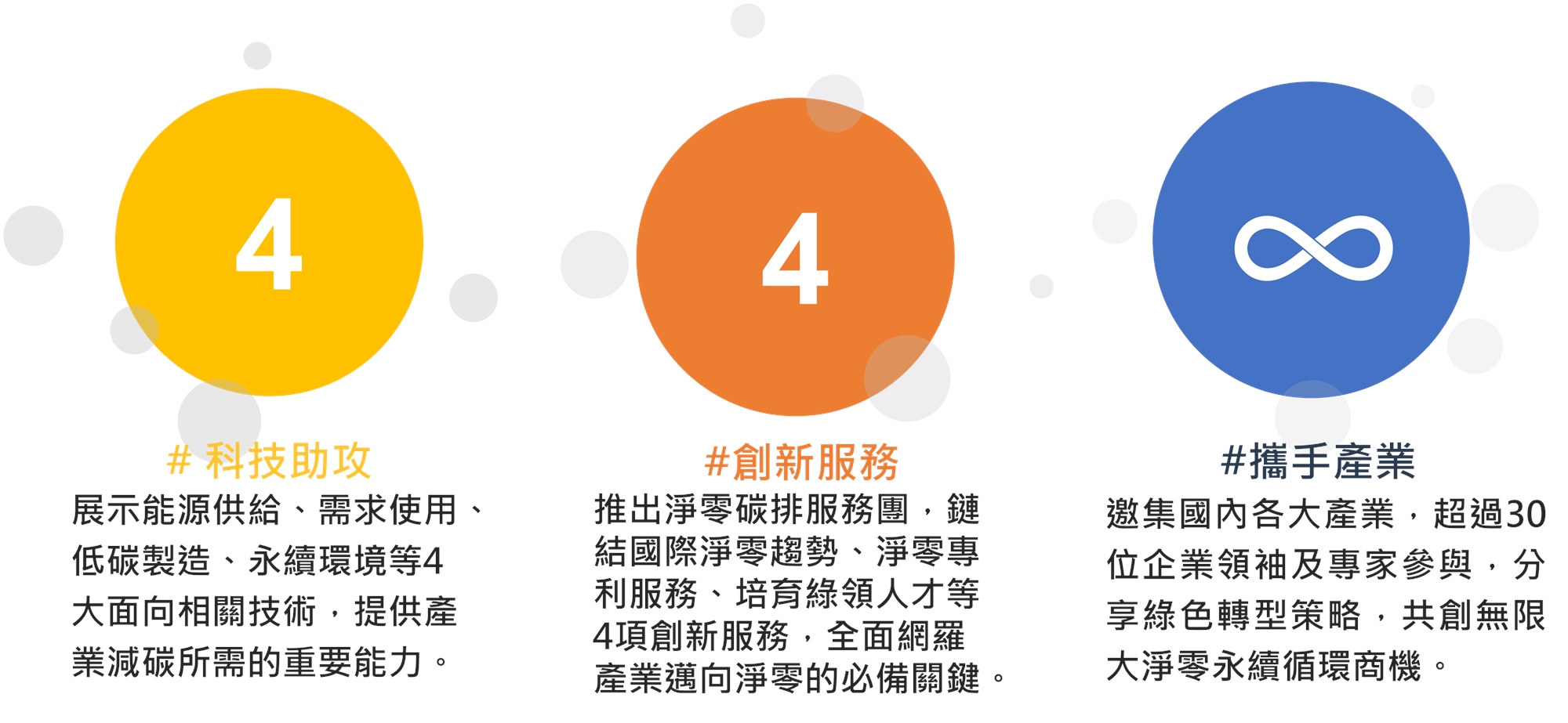 ※ 除了論壇及技術展示外,若您對於創新技術及淨零服務有興趣,歡迎預約「企業淨零減碳洽談會」。