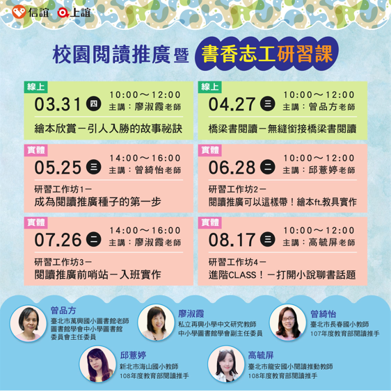 ★各場次搶先看:(個別場次將在開課前三週公告,敬請期待)