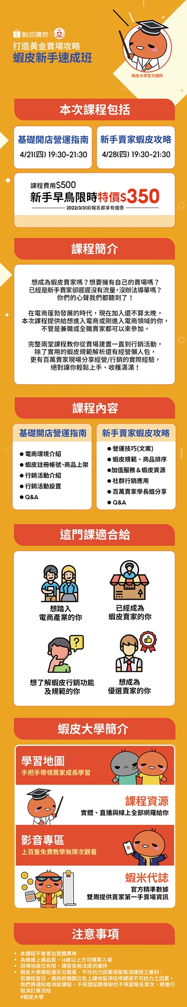 04/28(四) 19:30-21:30 新手賣家蝦皮攻略(19:15報到)