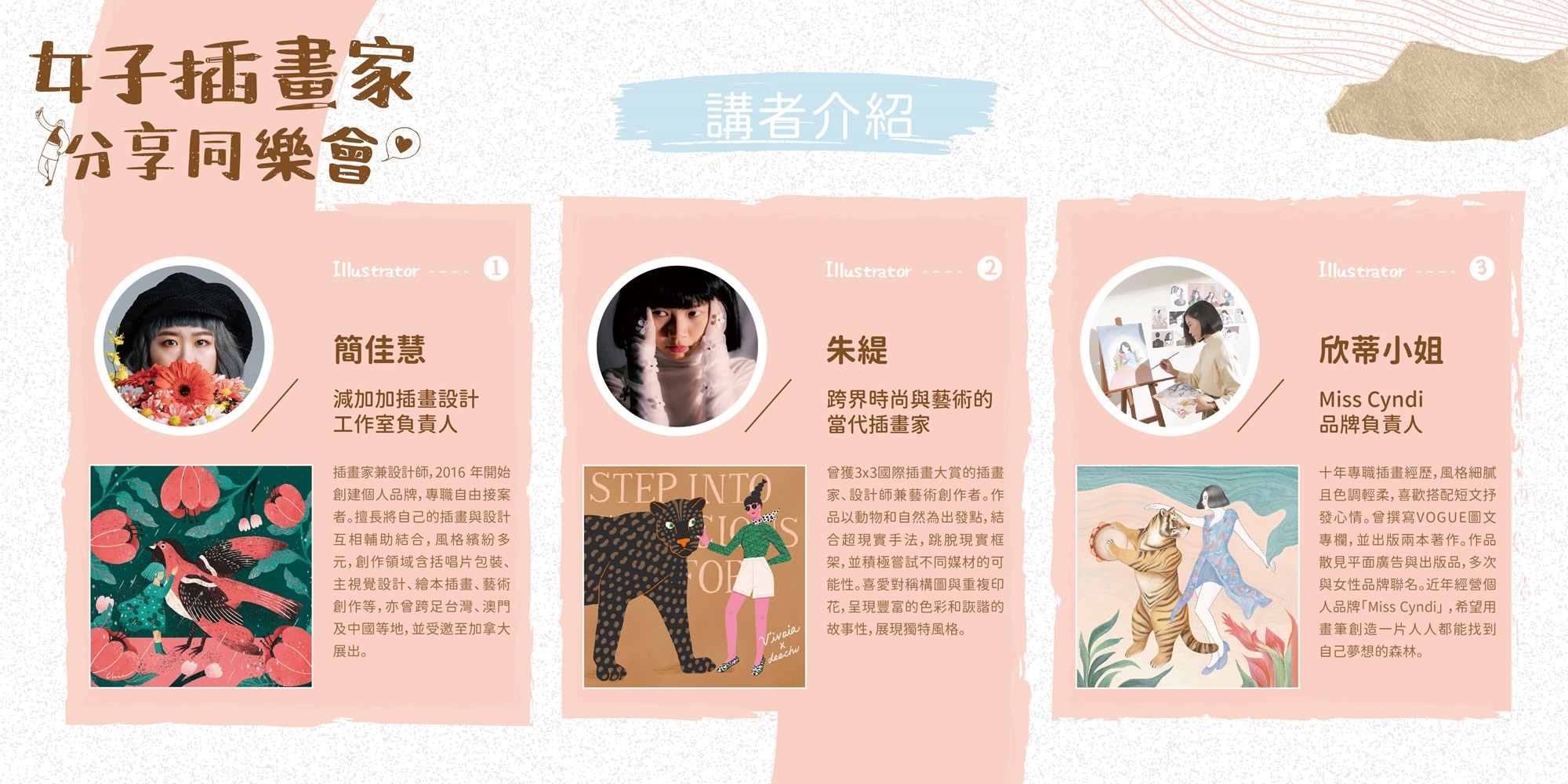 本次特別邀請到三位插畫界相當知名、擁有眾多獲獎/展出/商案經歷的女子插畫家