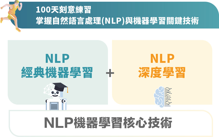 NLP自然語言機器學習馬拉松是一個結合自學、專家協助及社群討論的AI自學挑戰活動,目標是利用 100 天的時間讓學員掌握自然語言與機器學習/深度學習的關鍵知識點和實務技術應用。