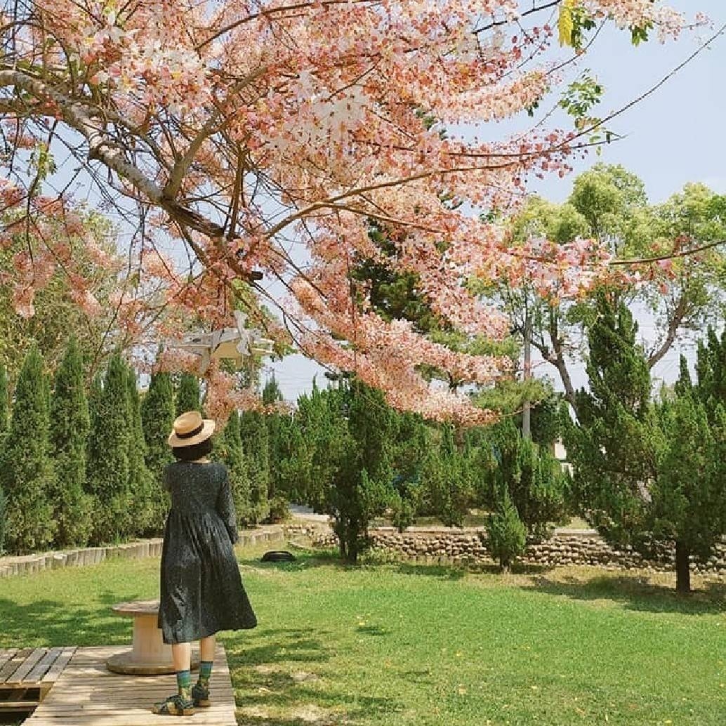 大家穿的粉粉,為寬闊的綠地帶來鮮豔點綴