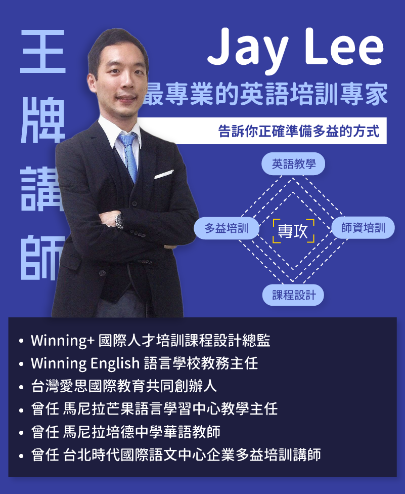 | 15:15-15:45 | 30 分鐘 | 《拆解多益學習模式》解決你的多益學習痛點 | Jay Lee |