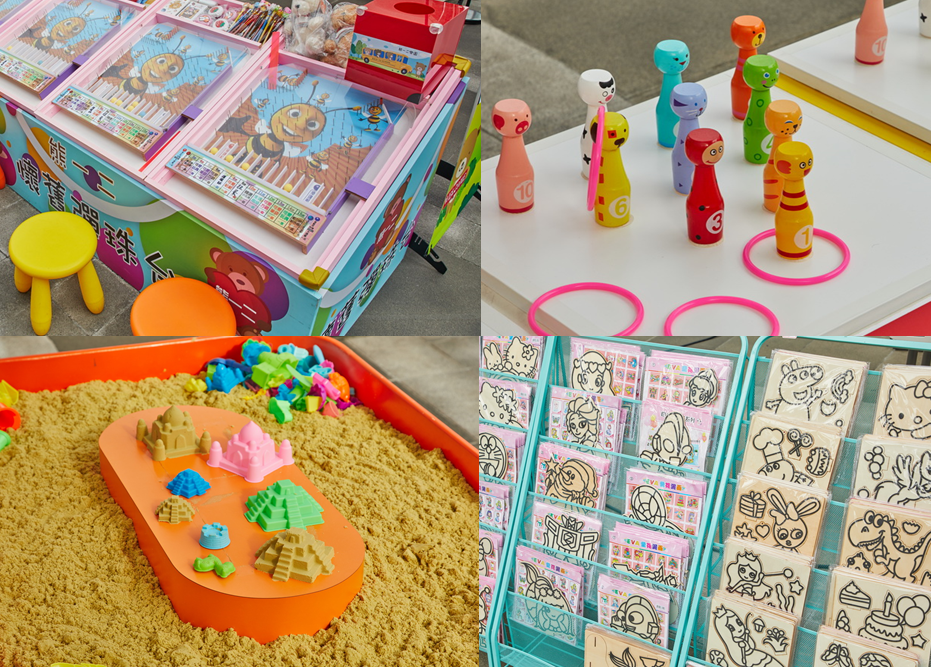 過去只會出現在公園週末午後市集,及鄉村夜市的童趣遊戲攤位,例如可以發揮天馬行空創意、自由大膽配色的DIY沙畫體驗,讓人一局接著一局玩不停的懷舊打彈珠台 ,夜市不敗經典套圈圈遊戲 ,讓小朋友玩沙不必跑公園沙坑的塑形砂捏捏樂等項目,完整呈現。