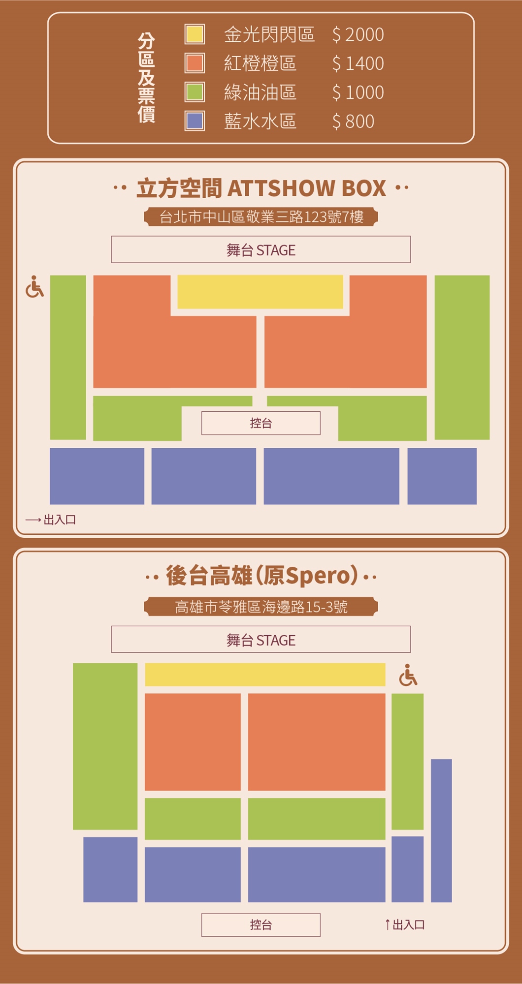 ATT SHOW BOX(台北市中山區敬業三路123號8樓)﹑後台 Backstage Live(高雄市苓雅區海邊路15-3號))