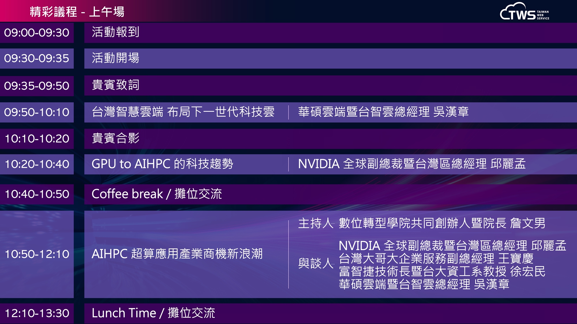 - 主辦單位:台灣智慧雲端、台灣大哥大、NVIDIA