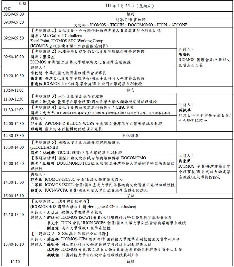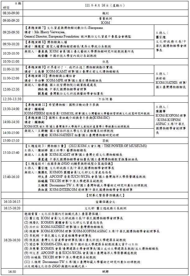 為了近一步深化、擴展並探討整合各界力量的可能性,文化部文化資產局,以「文化資產」與「博物館」領域之「參與、鏈結與協作」為起點於4月15、16日舉辦「文化保存國際組織交流論壇」,邀集國內外近年積極參與文化資產及博物館相關領域iNGO之專家學者,進行專業知識交流與實務經驗傳承,促進國內外文化資產與博物館跨域之交流協作以及青年參與,進一步向外推動臺灣文化保存整合成果。