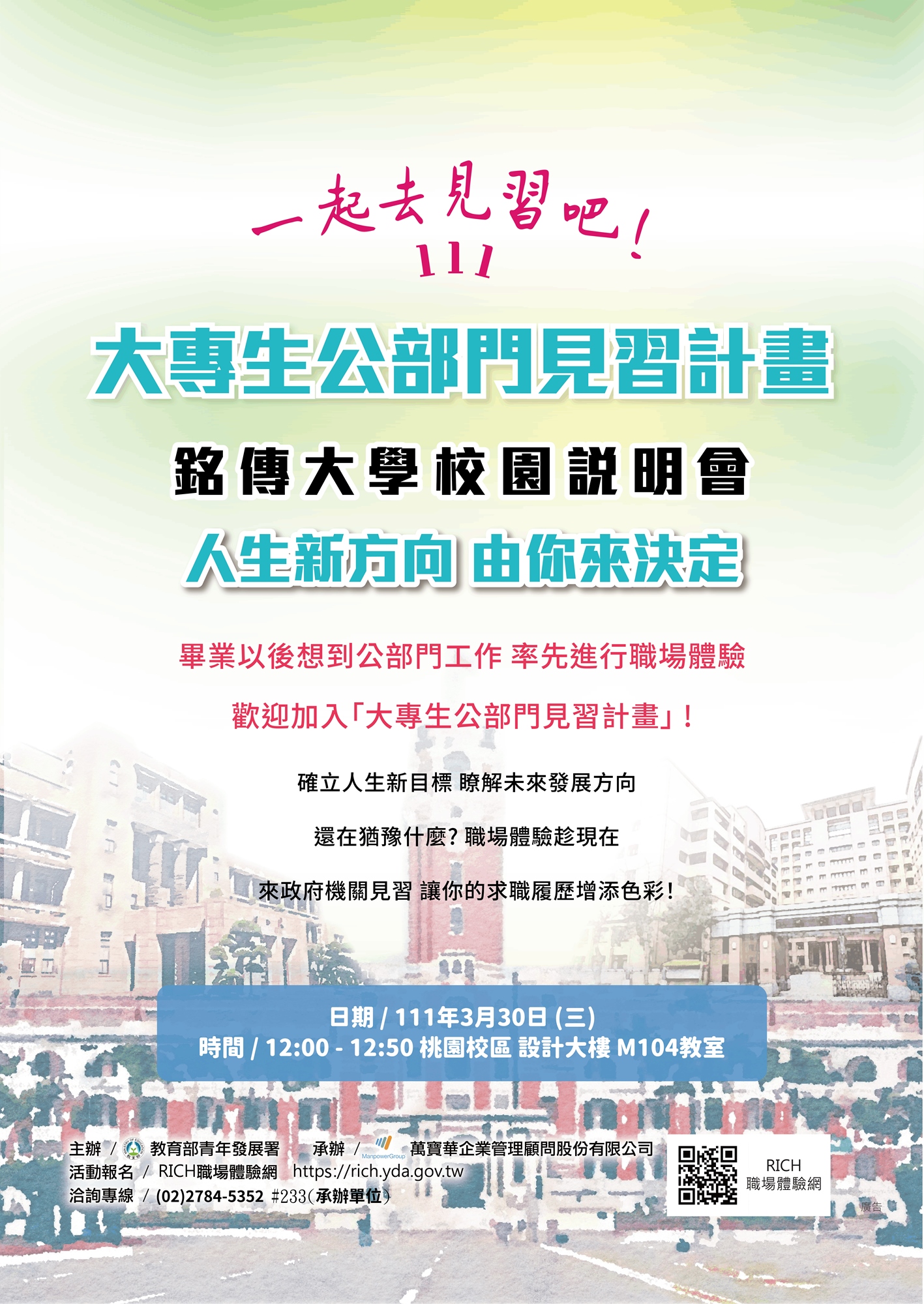 【111公部門見習計畫】銘傳大學校園說明會(桃園校區)