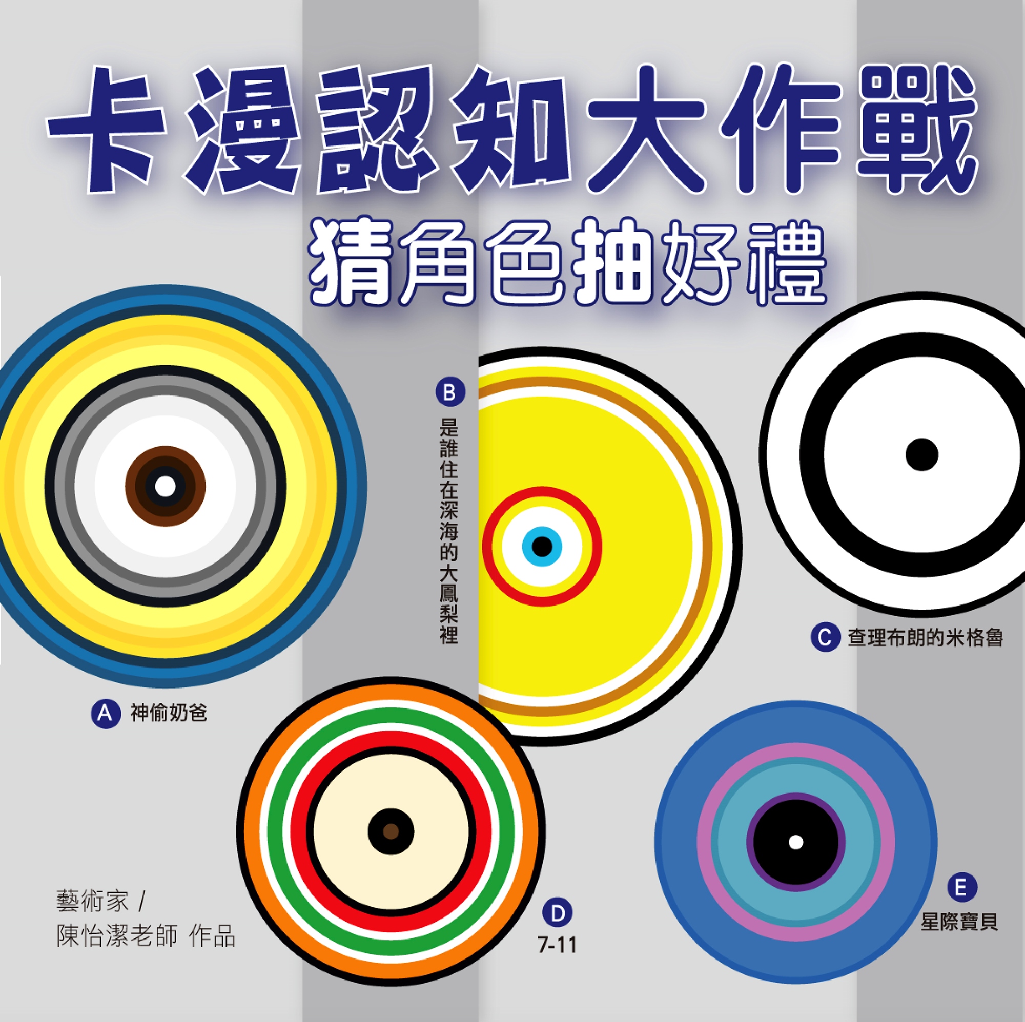 在這次藝展中,藝術家 陳怡潔老師 特別設計了13款「卡漫胸章」,每個胸章都是用知名動漫角色的顏色所設計而成喔,是不是很有趣呢 ?