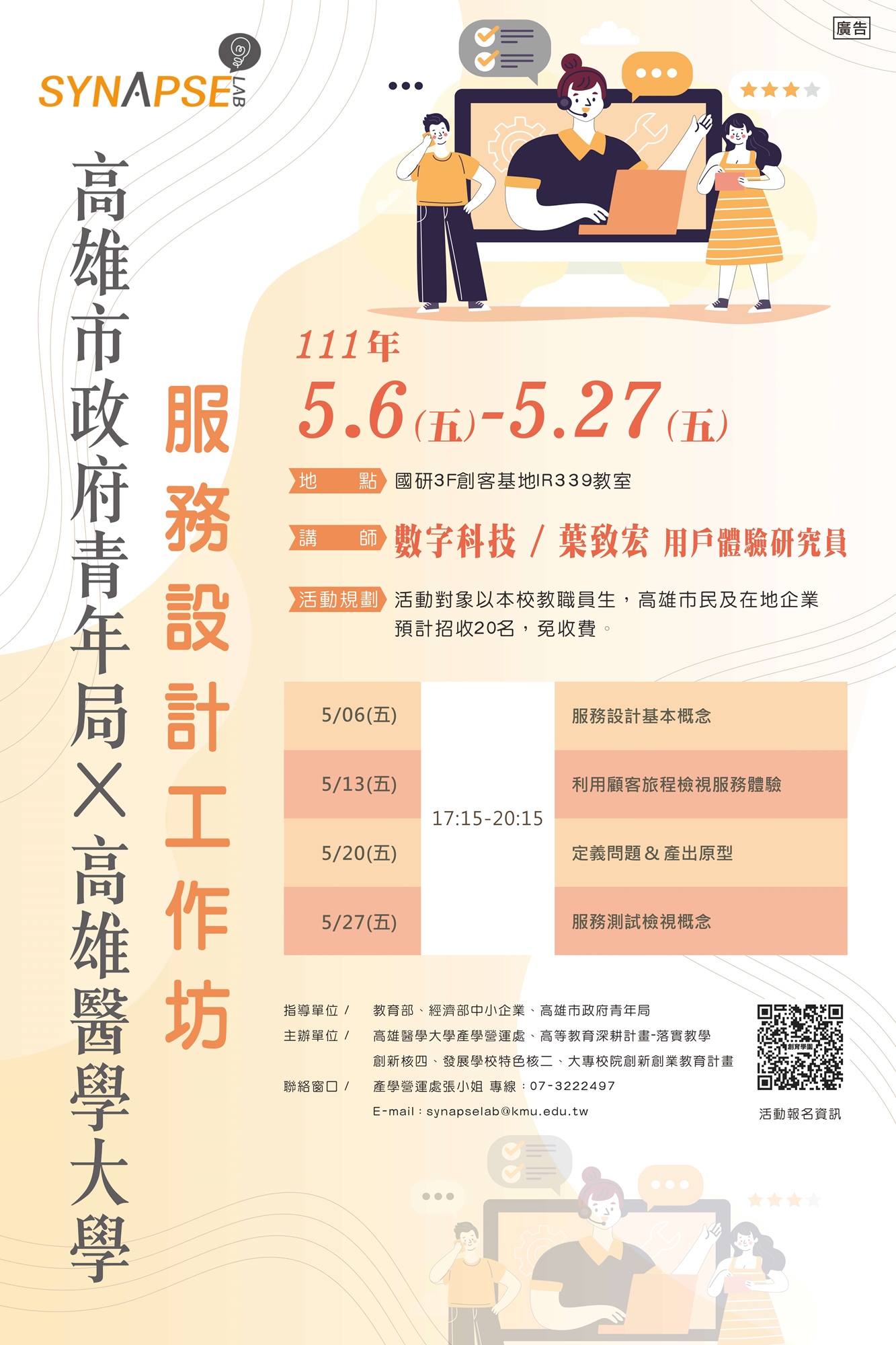 【聯絡窗口】張小姐 專線:07-3222497|單位信箱:synapselab@kmu.edu.tw