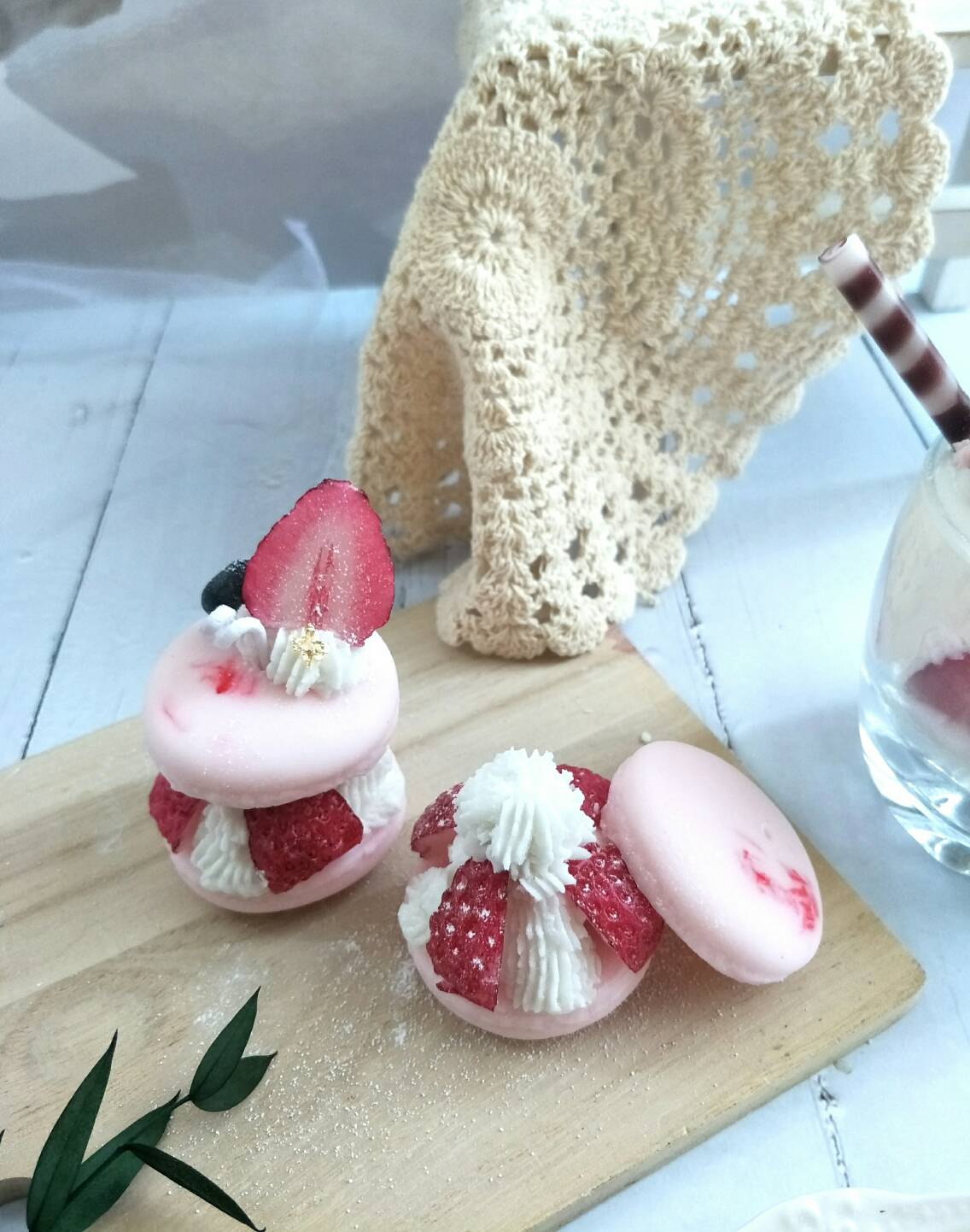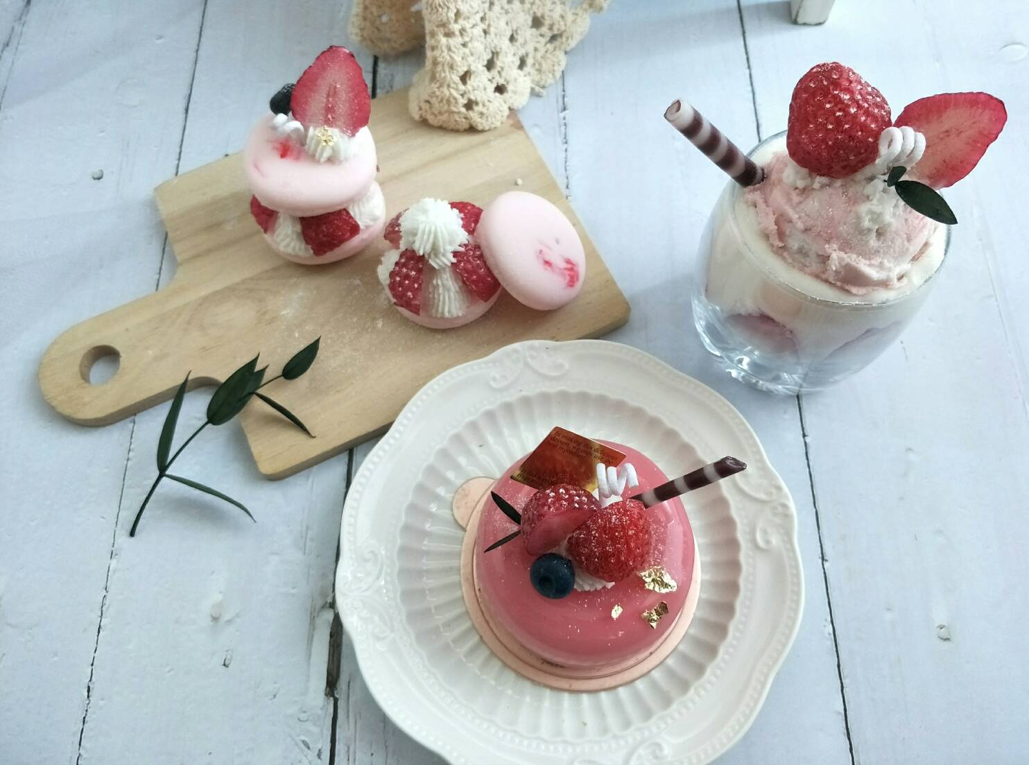 ・課程結束可帶回馬卡龍蠟燭*2、慕斯蛋糕蠟燭*1、草莓乳酪杯蠟燭*1,並提供紙盒包裝