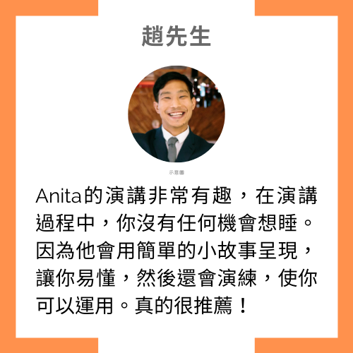 - 曾任新加坡商People Search 高階獵人才顧問。