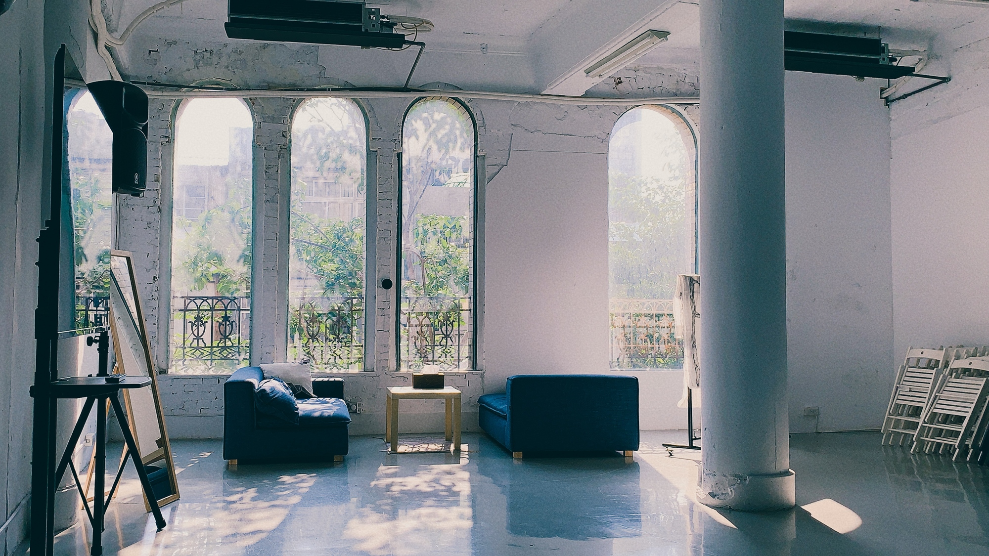 早年日本明治維新時期,全面西化的政策,對於日治時代的台灣建築影響深厚,這棟棧房有著洋樓式拱形大窗,提供了白天極佳的採光,挑高形長的Loft空間適合盡情造夢,三座聳立內部的圓柱,支撐著近百年來的流光歲月。