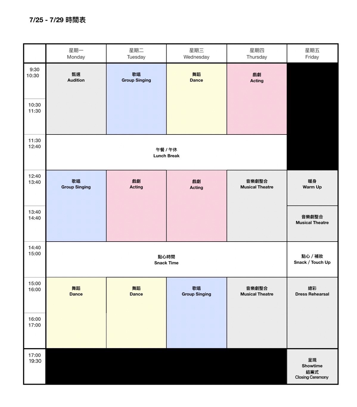 - 本課程會有課堂紀錄、演出呈現紀錄,於課程後提供給家長留念。