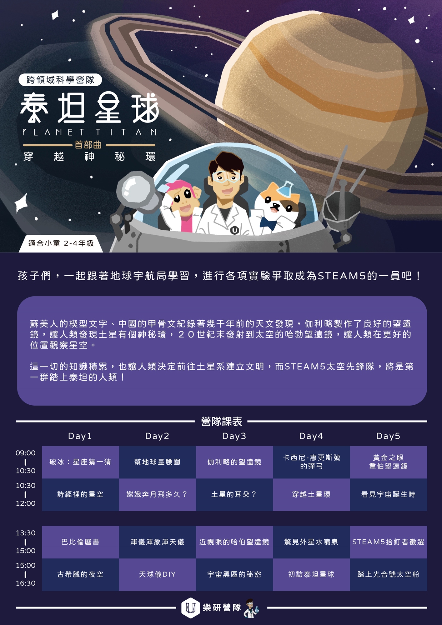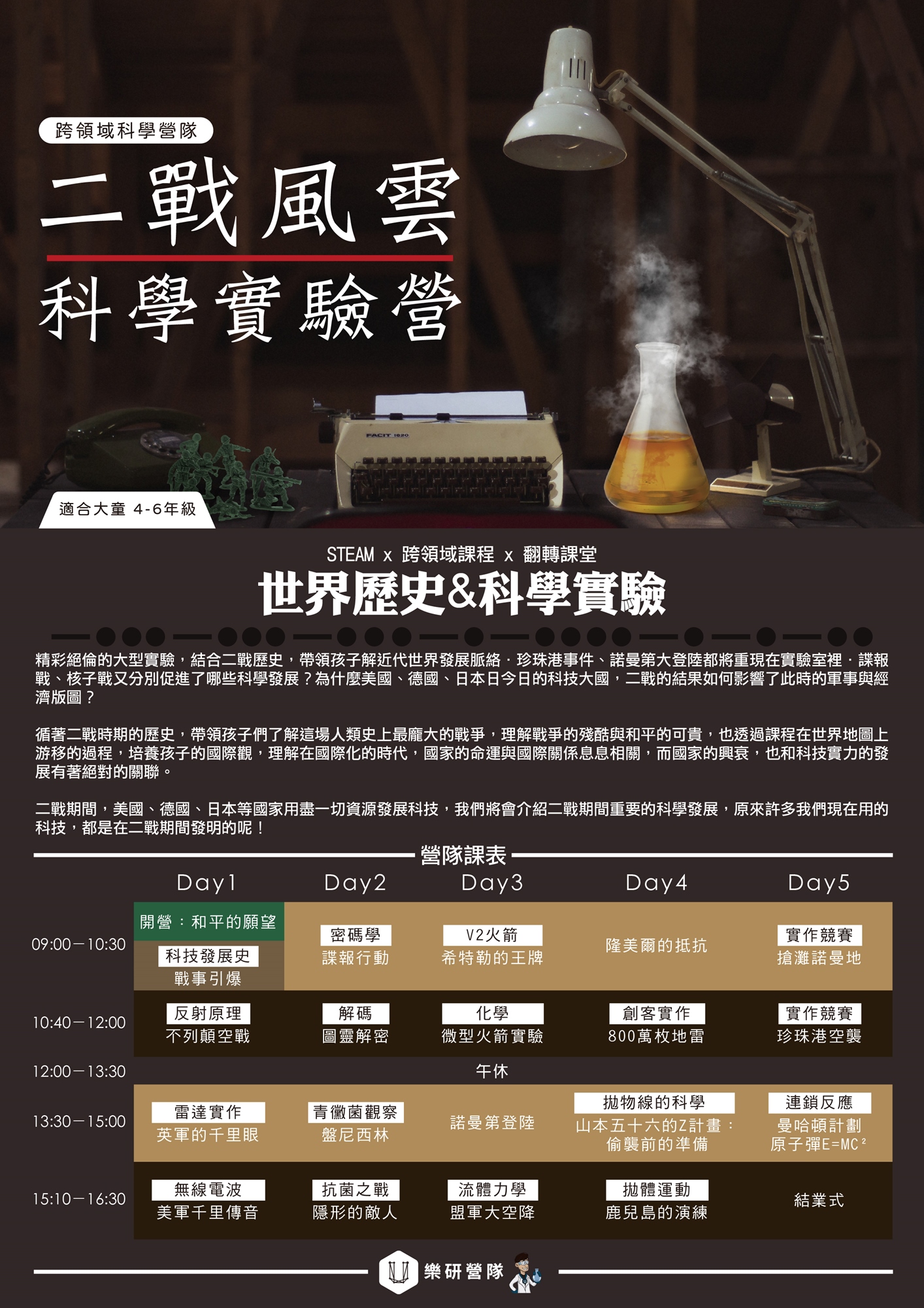 ※防疫約定項目:若報名後防疫政策發生變動,禁止舉辦實體營隊活動,隨即將課程轉為線上模式,樂研與家長雙方於報名時皆同意此規定,屆時不再另做調查,請家長事先充分考慮,一旦報名則表示同意此約定。