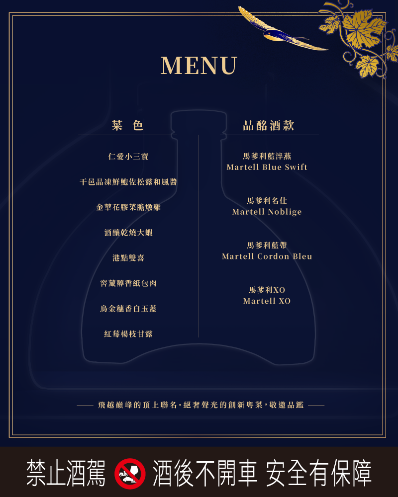 當日現場購買馬爹利酒款可折抵NT$500消費金額,每人每次僅限折抵乙次。