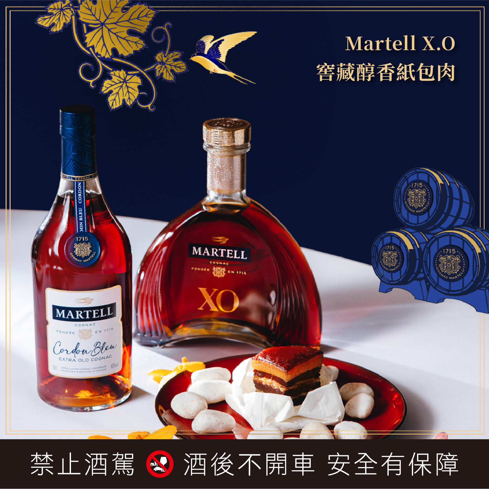 ◆ 週末場次(週六、週日):$2,480 ;品鑑酒款含馬爹利藍淬燕/名仕/藍帶/X.O/尚選X.X.O