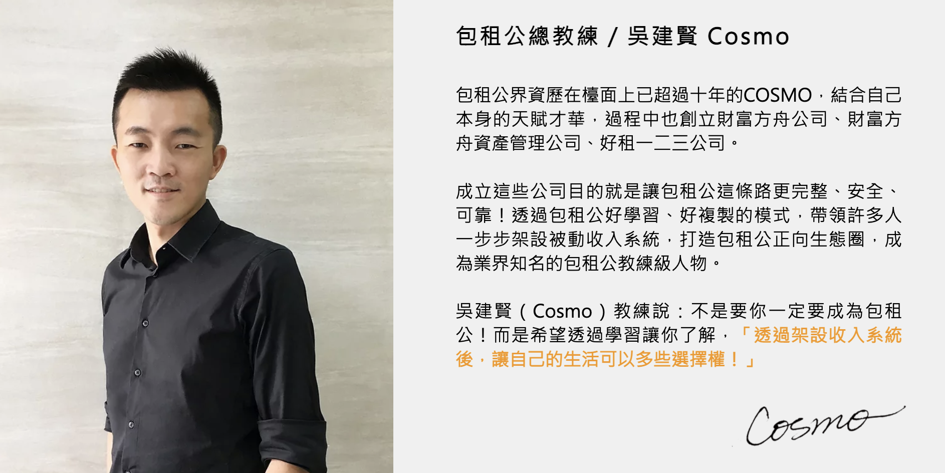 《 吳建賢 Cosmo 包租公總教練 介紹 》