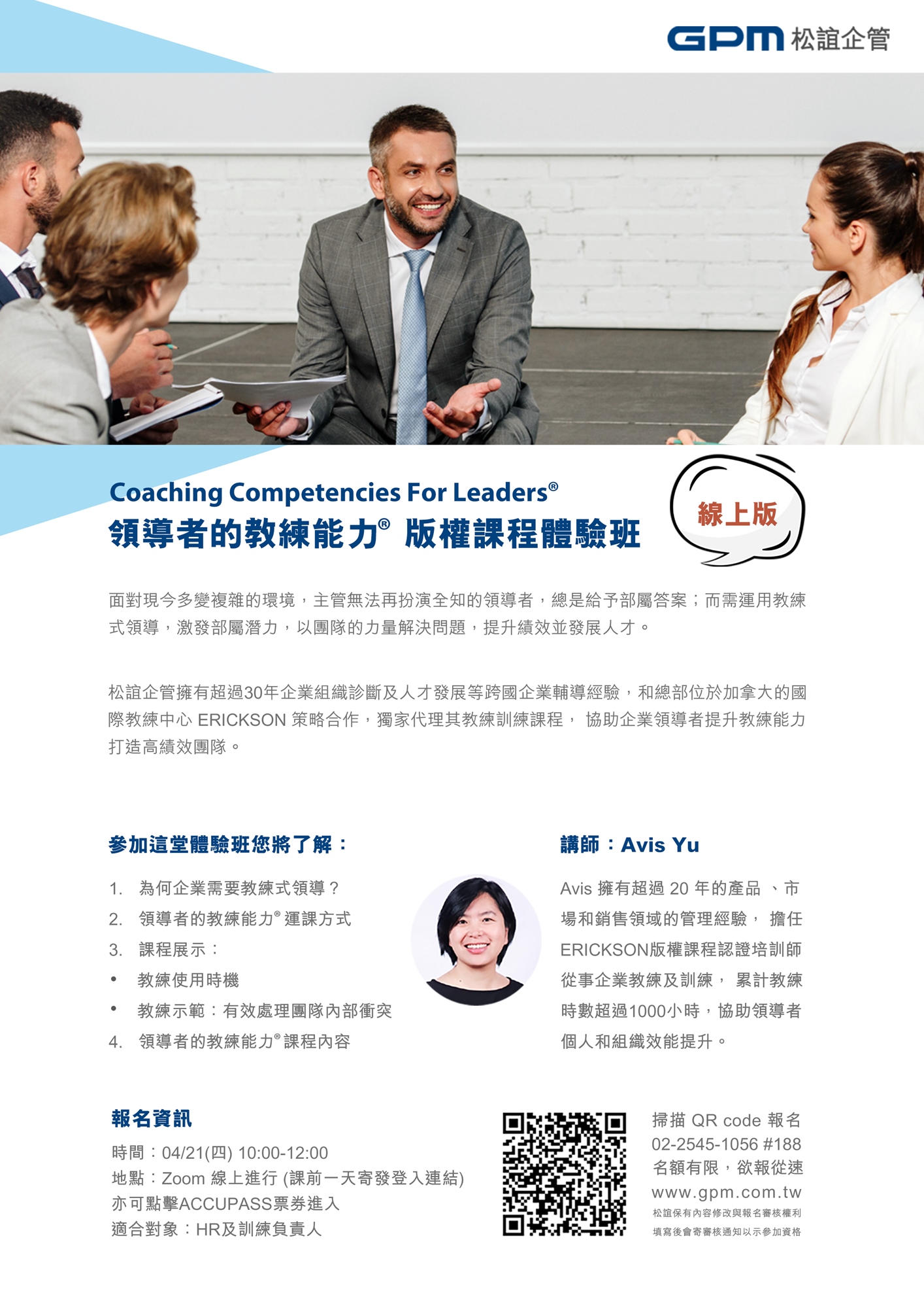 面對現今多變複雜的環境,主管無法再扮演全知的領導者,總是給予部屬答案;而需運用教練式領導,激發部屬潛力,以團隊的力量解決問題,提升績效並發展人才。