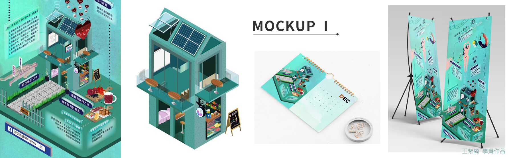 認識視覺錯視、空間視角、Isometric 的基礎,Isometric草圖繪製,並上機練習數位化。