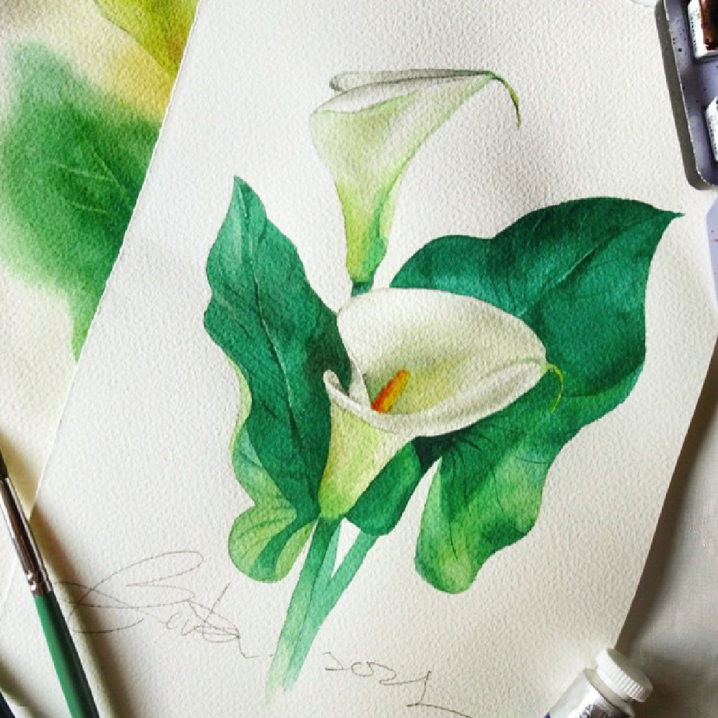 綠色系列的色彩變化,一起來畫出海芋的清新與優雅