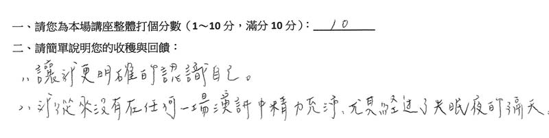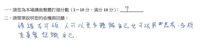 「看到更多可以處理情緒的理性方法,很棒的課程!」—八月場學員