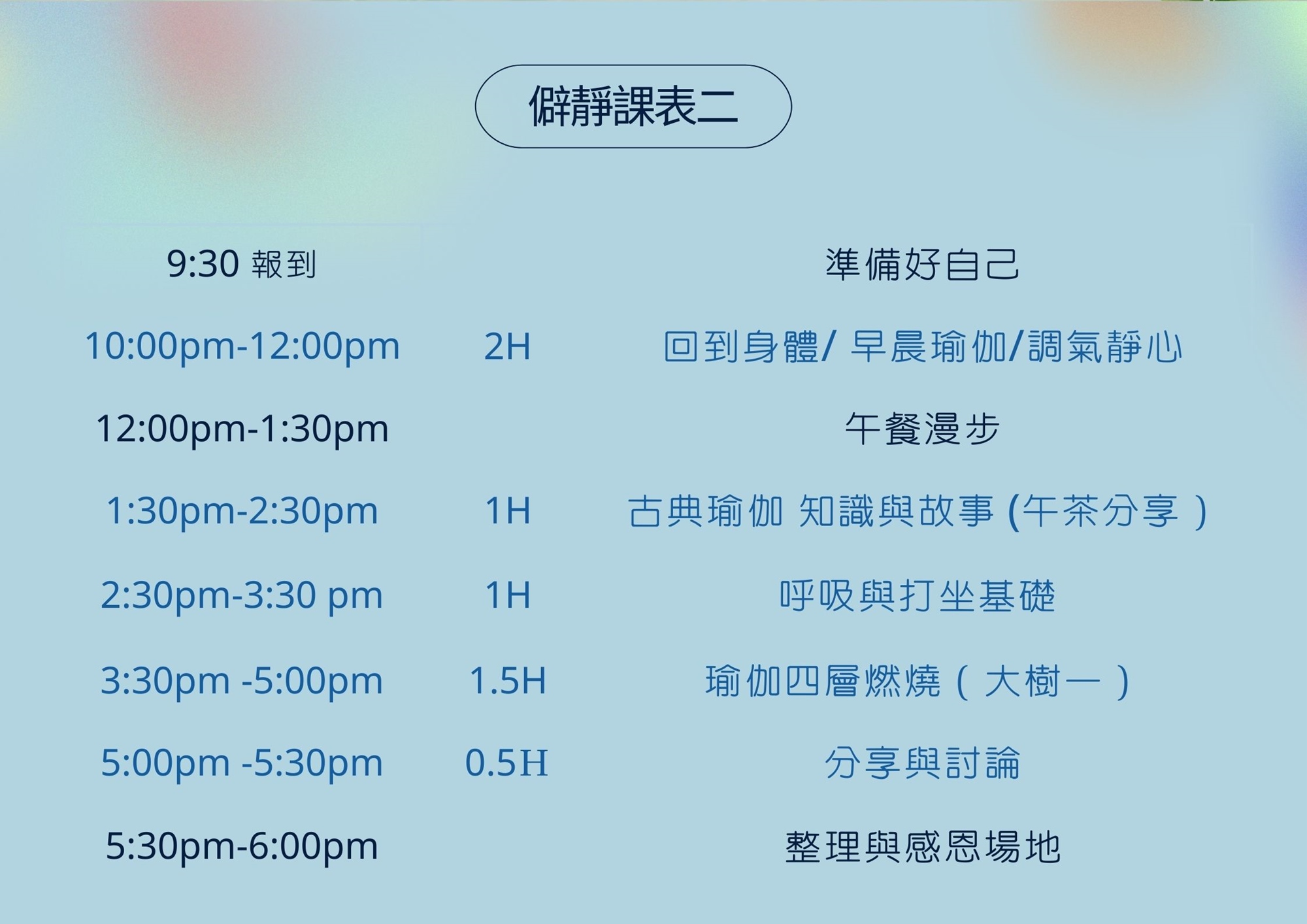 (瑜伽/ 靜坐/ 呼吸/ 排毒/ 花藝/旅行)