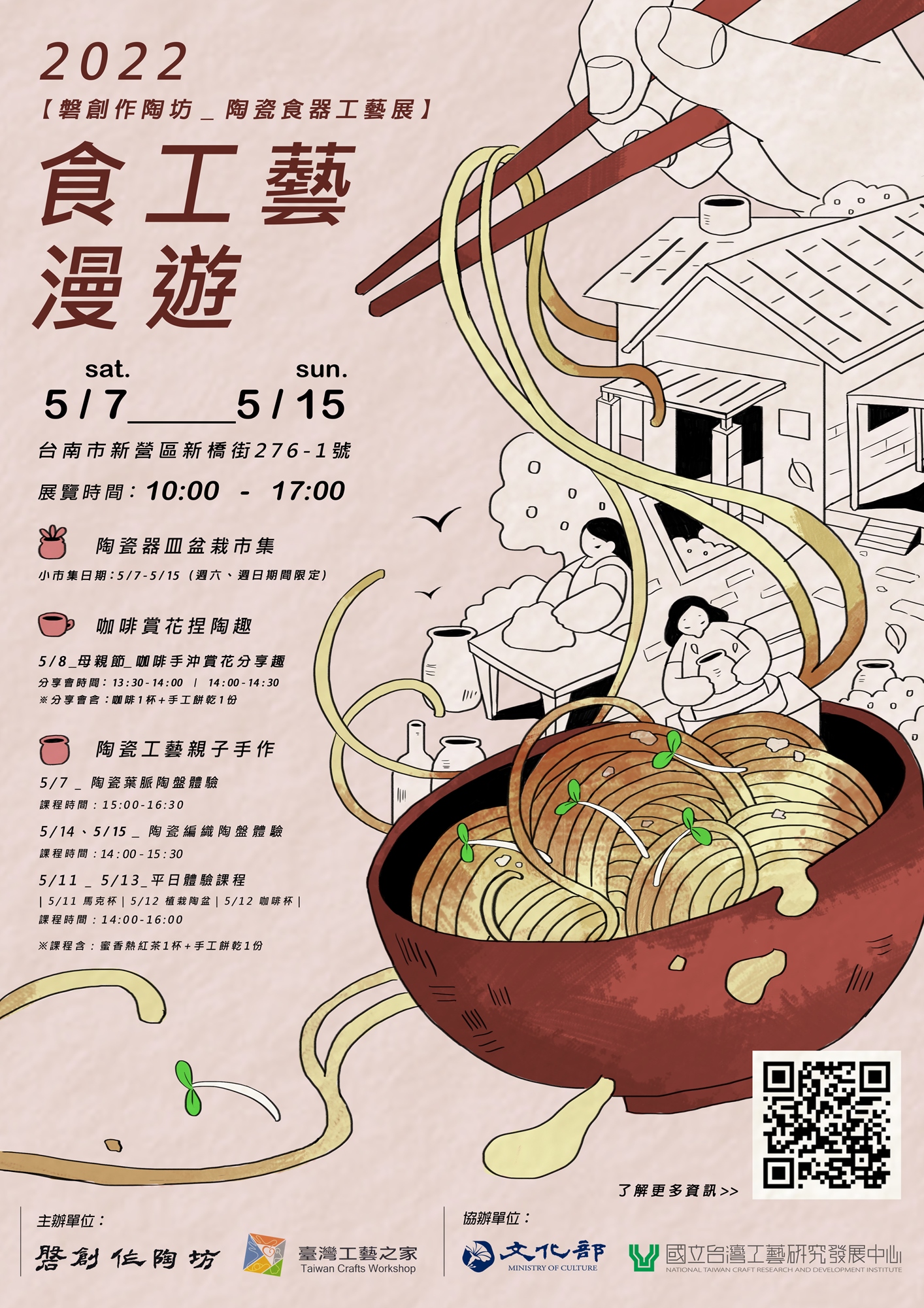 展覽由在地經營30多年的 磐創作陶坊 所主辦,我們以「陶瓷食器」與「台南美食」為展覽主軸,推廣陶瓷工藝於日常餐桌生活的應用與體驗,並在餐桌上以工藝譜寫屬於台南的美食風景。