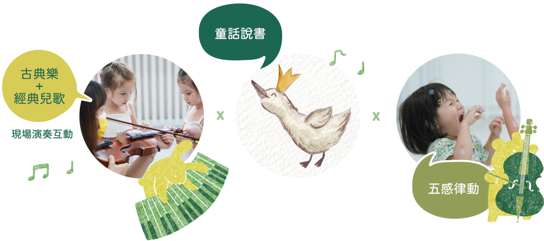 管弦樂手及鋼琴家現場演奏 X 童話說書 X 感覺統合律動 X 金曲獎音樂製作人編曲