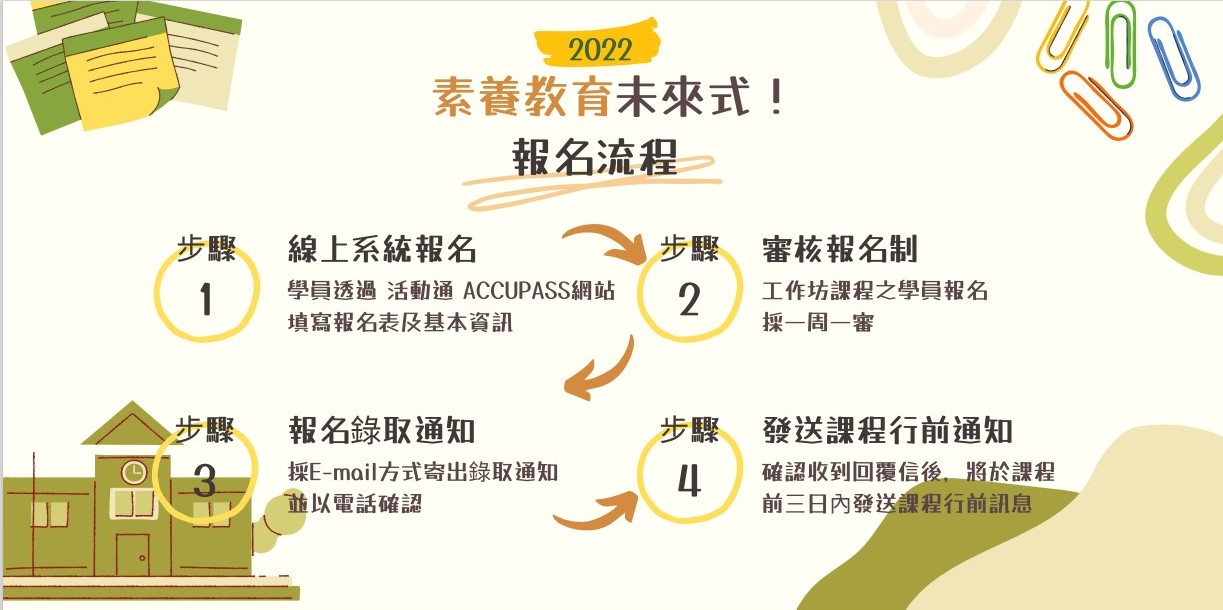 >>>提醒您:填寫完活動通上的報名表、並送出,將收到系統自動發出的通知信件,表示「已收到」您的報名表。 工作團隊會一周一審寄出【錄取通知信件】,才算是錄取本課程,請留意Email 收信!