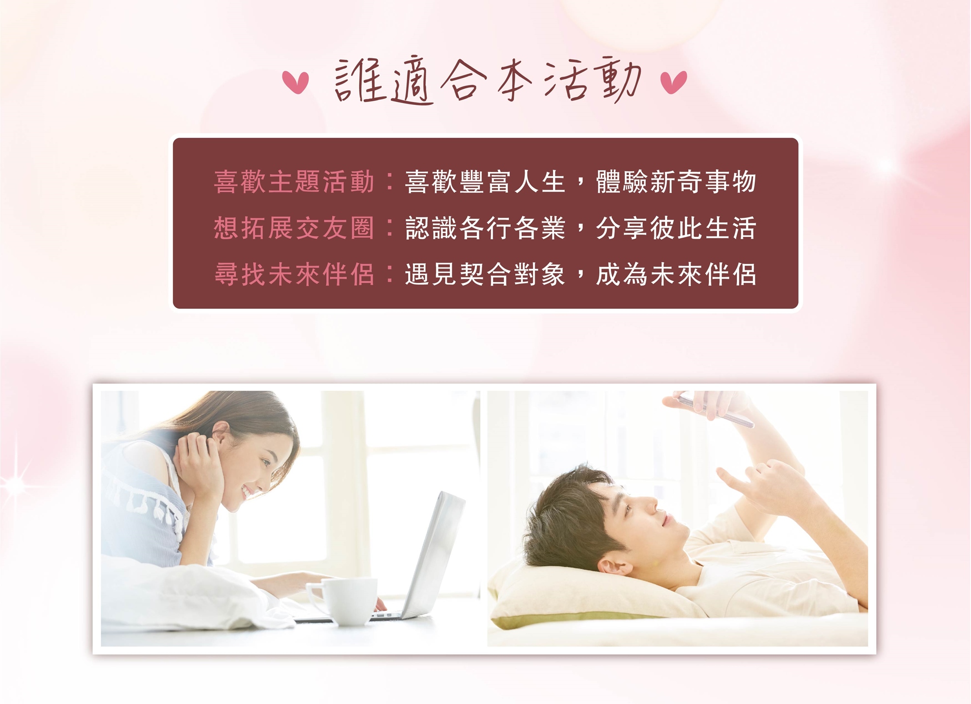 「讓適婚的單身男女,都有圓滿幸福的戀愛或婚姻關係!」