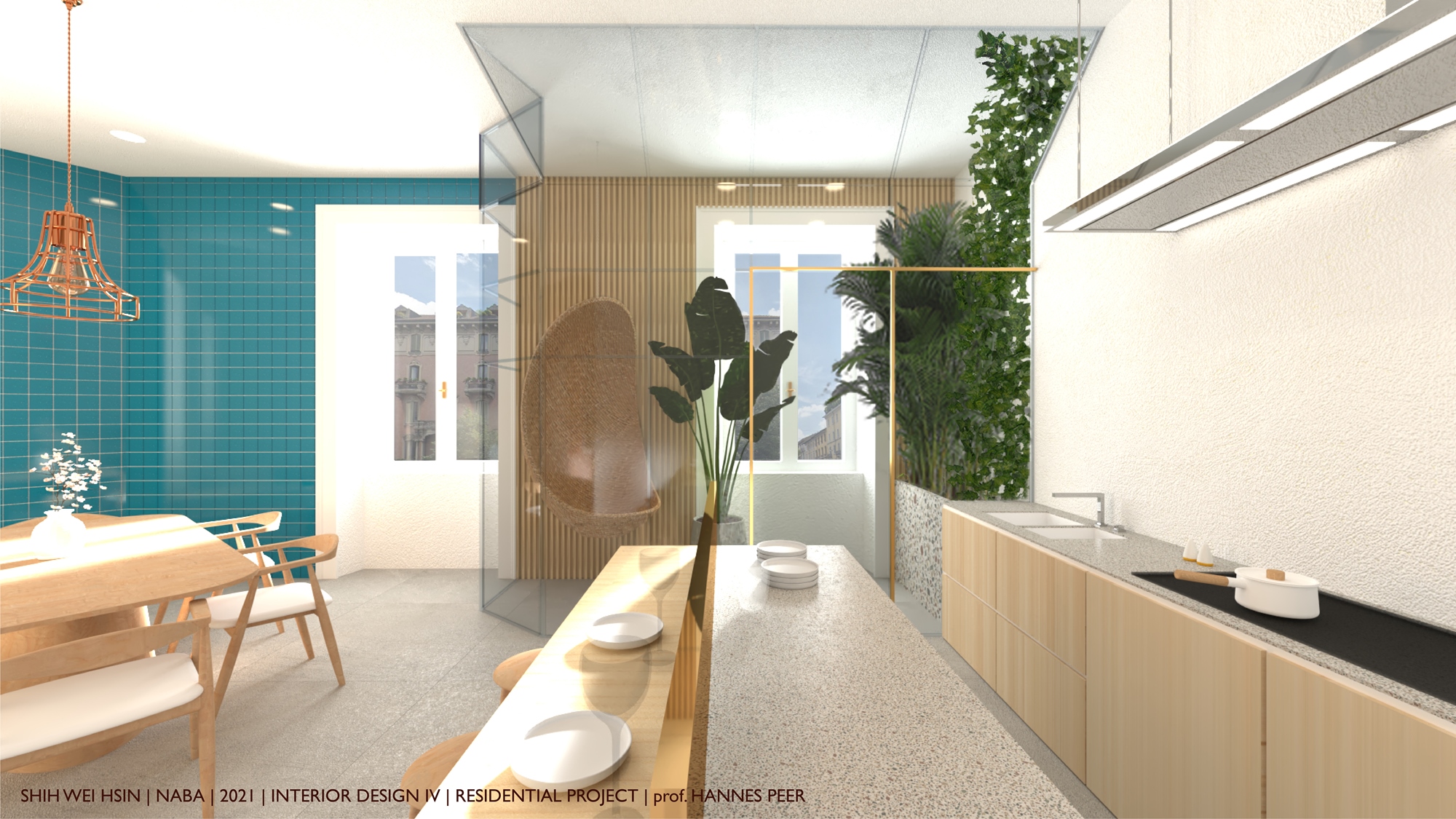 NABA的課程豐富且多元,並不只專注於室內空間設計,同時也有藝術史和設計史、展覽設計、傢俱設計,甚至於基礎動畫影片製作等等。在NABA的兩年,除了教授們的授課內容外,更為重要的是能和來自異國的學生們交流,學習著以不同方向的新思維來帶入設計。